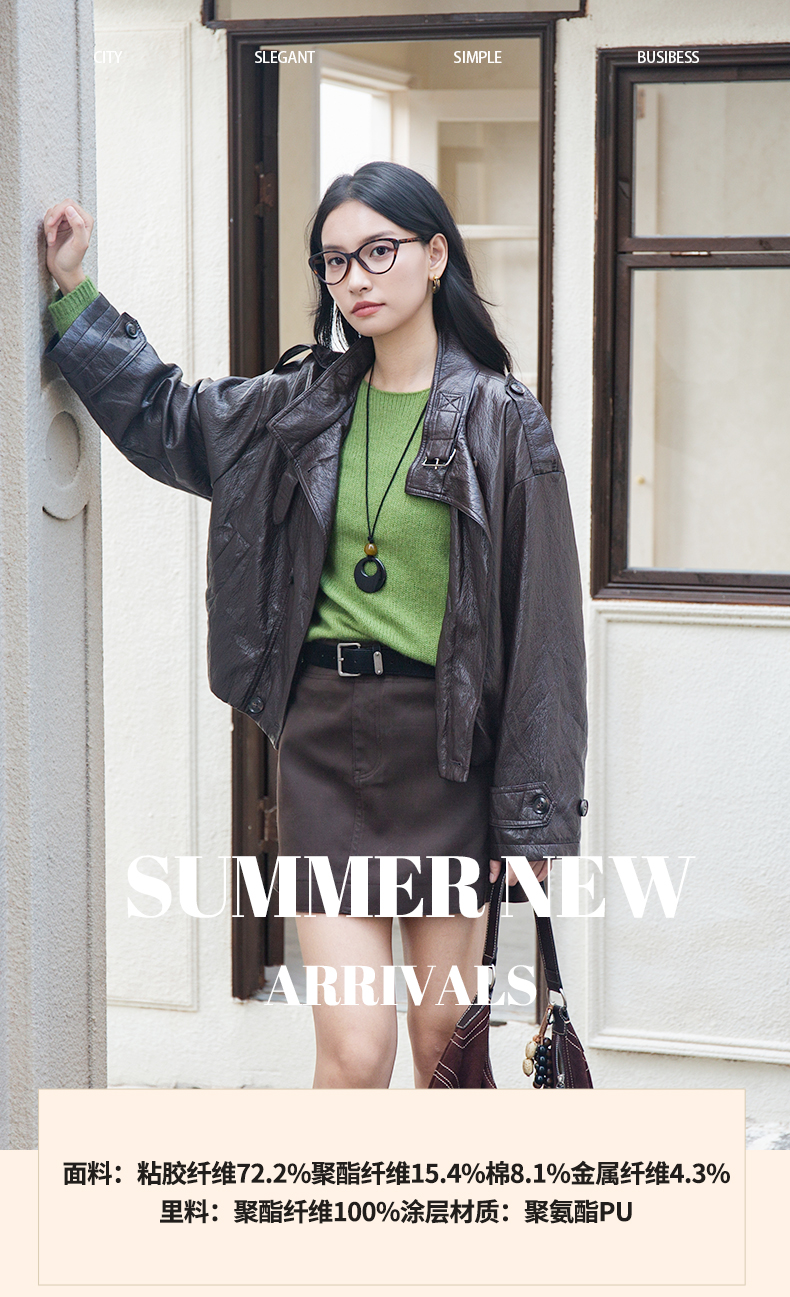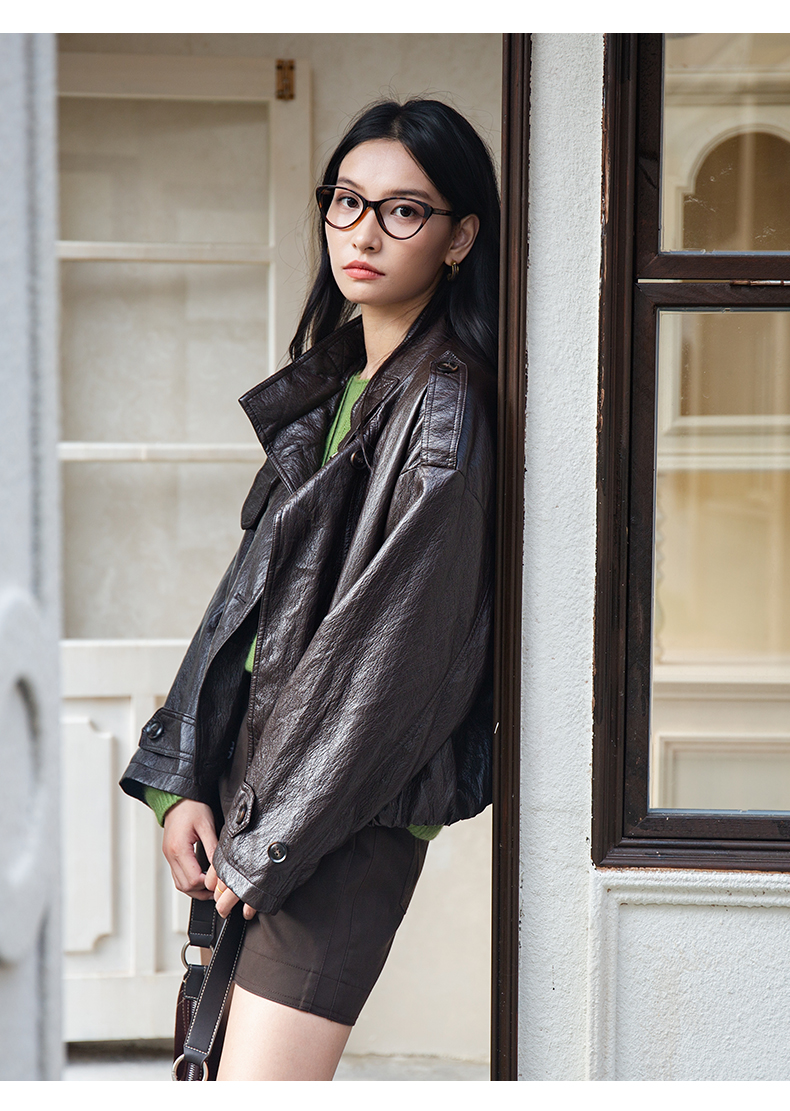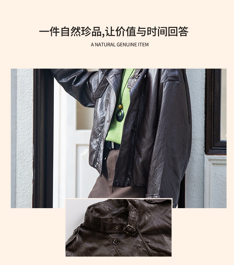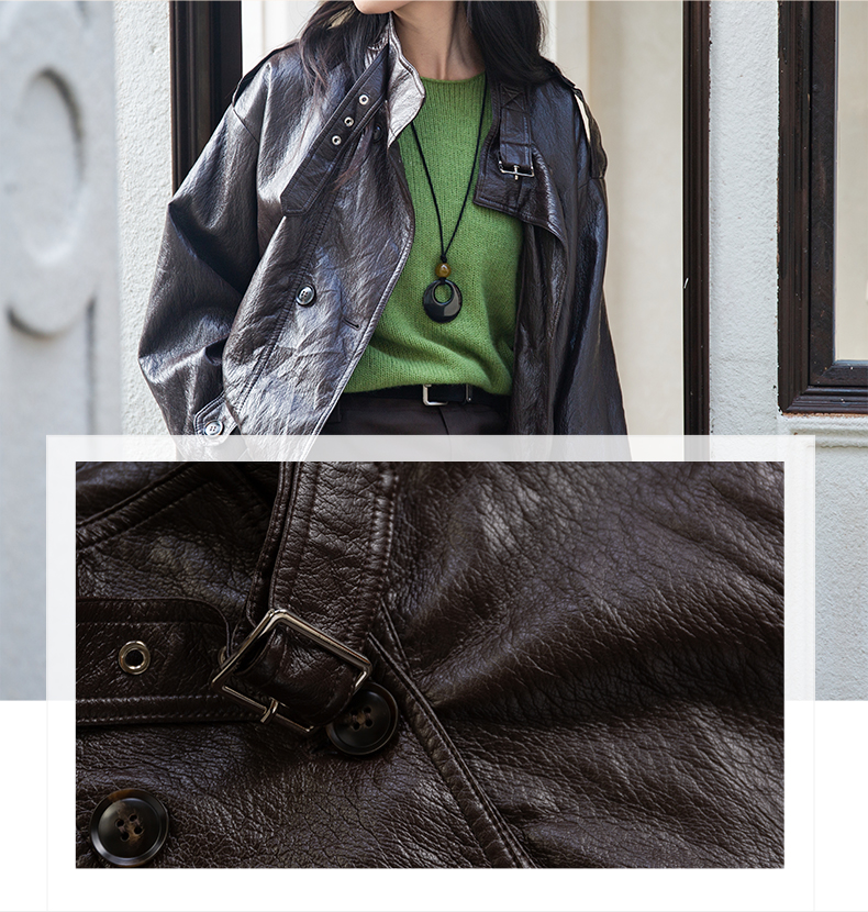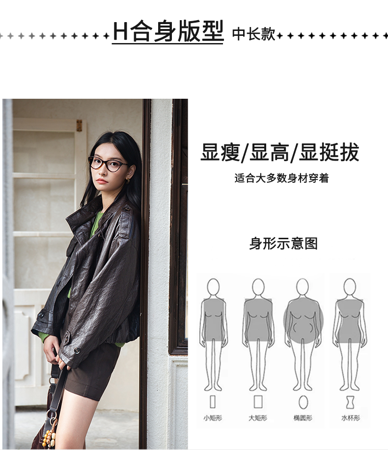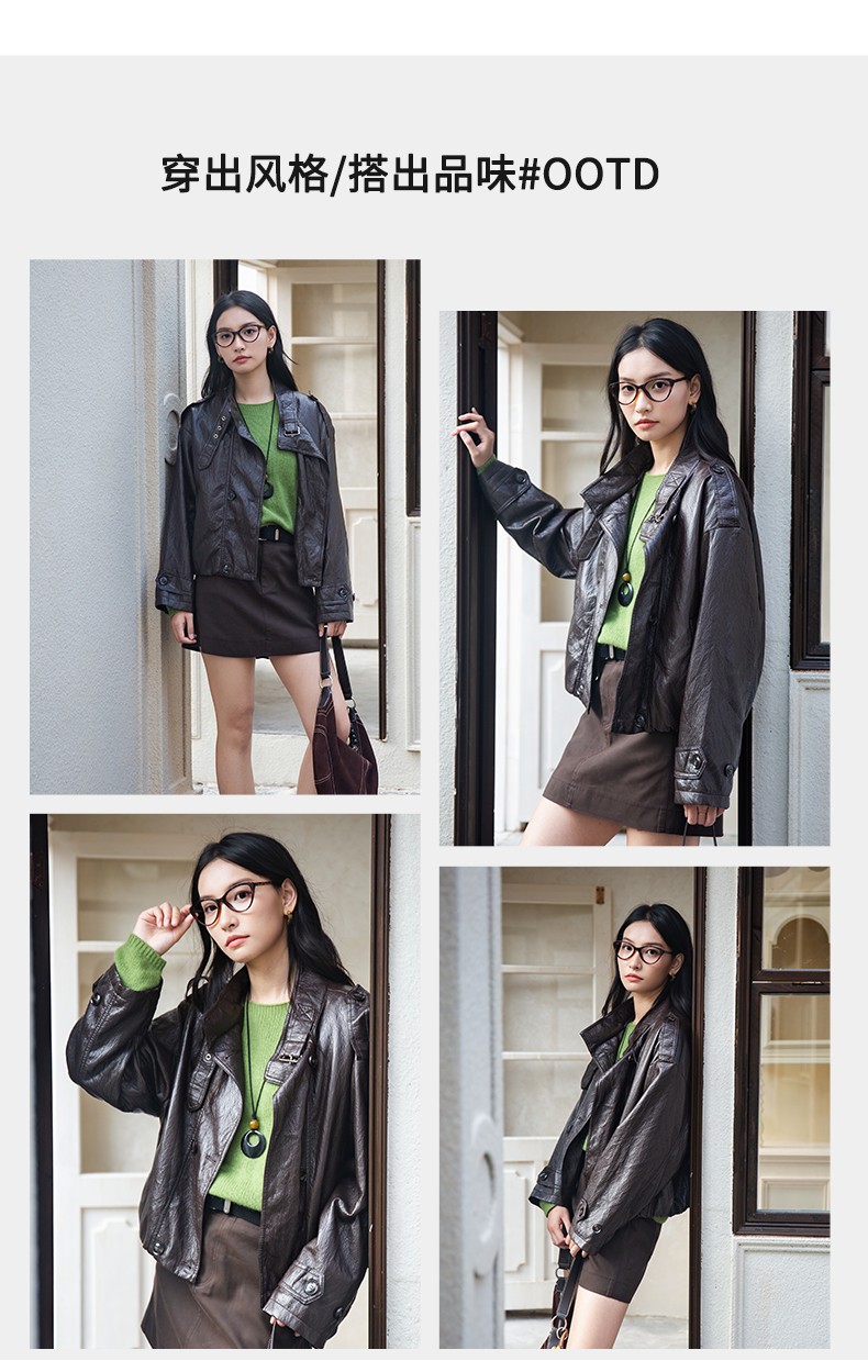 【门店同款】ENJOY秋季“光阴序语”双排扣袖口条纹皮衣 166296868