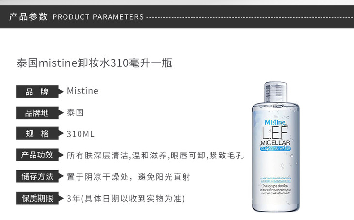 【一般贸易】泰国 Mistine(蜜丝婷) 3Q卸妆水 310ml/瓶
