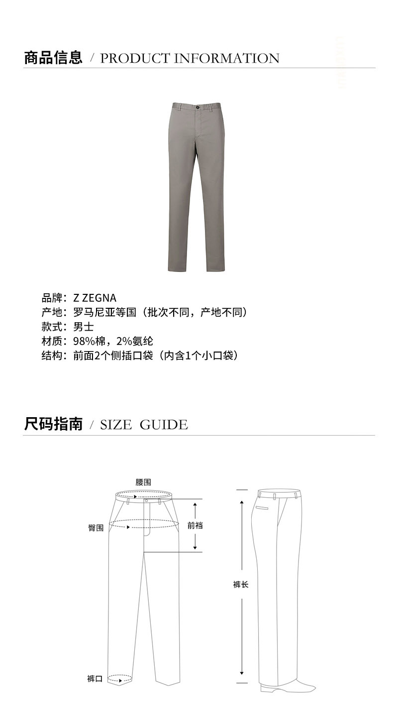 Z ZEGNA/杰尼亚 男士休闲裤 男士棉质休闲裤长裤 VY114 ZZ369