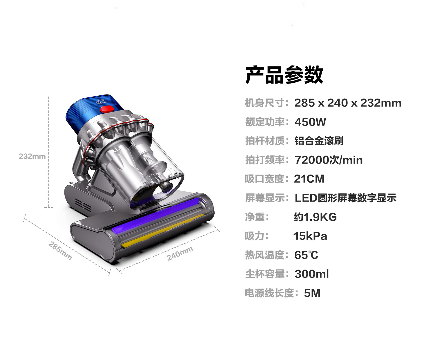小狗(puppy)有线除螨仪双杯尘螨分离 家用床上除螨机超声波去螨虫杀菌大吸力手持吸尘神器 W12