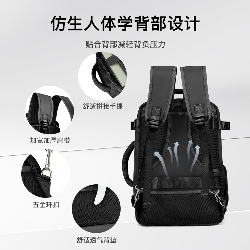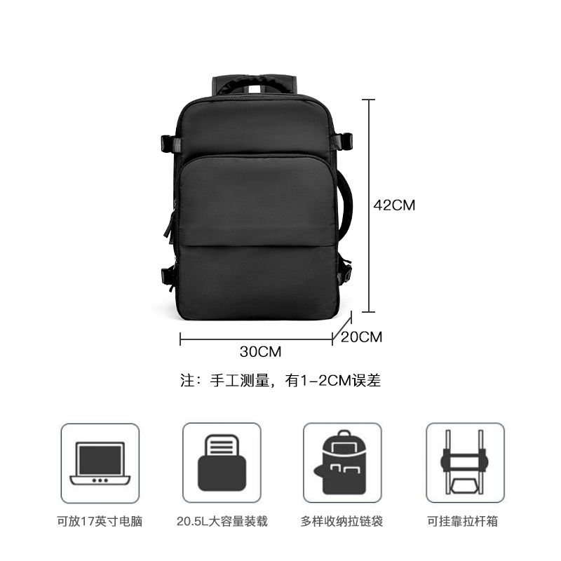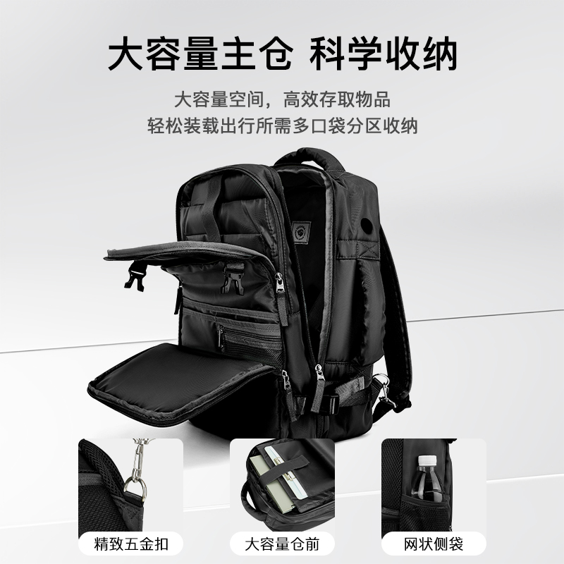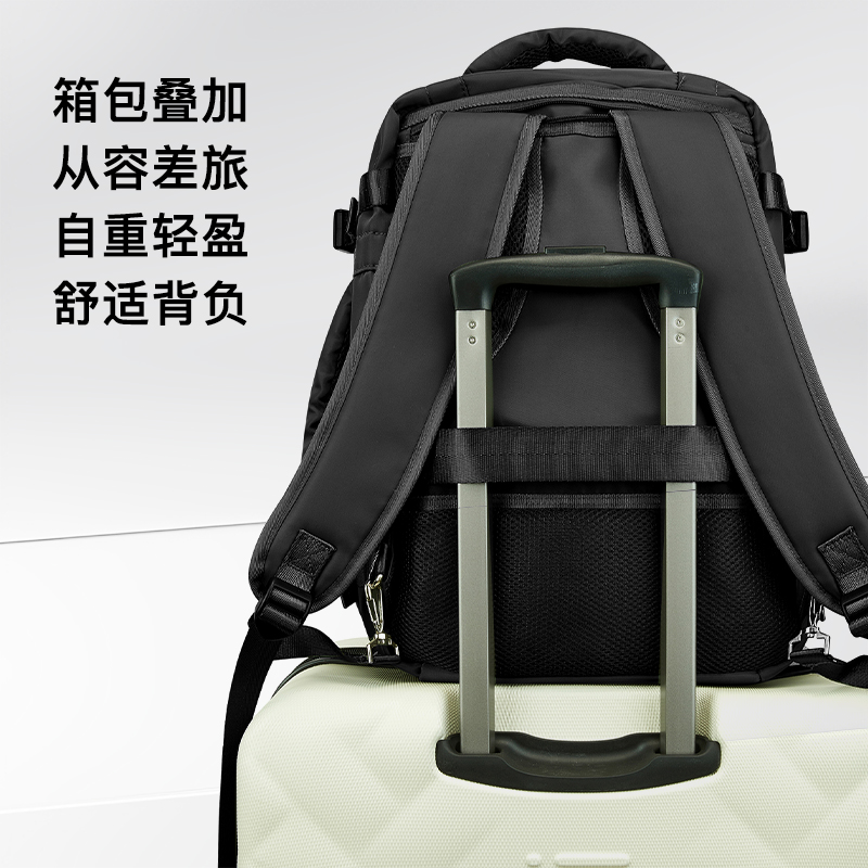 IGUANA旅行背包大容量双肩包 黑色短途旅游轻便行李书包(ZX)