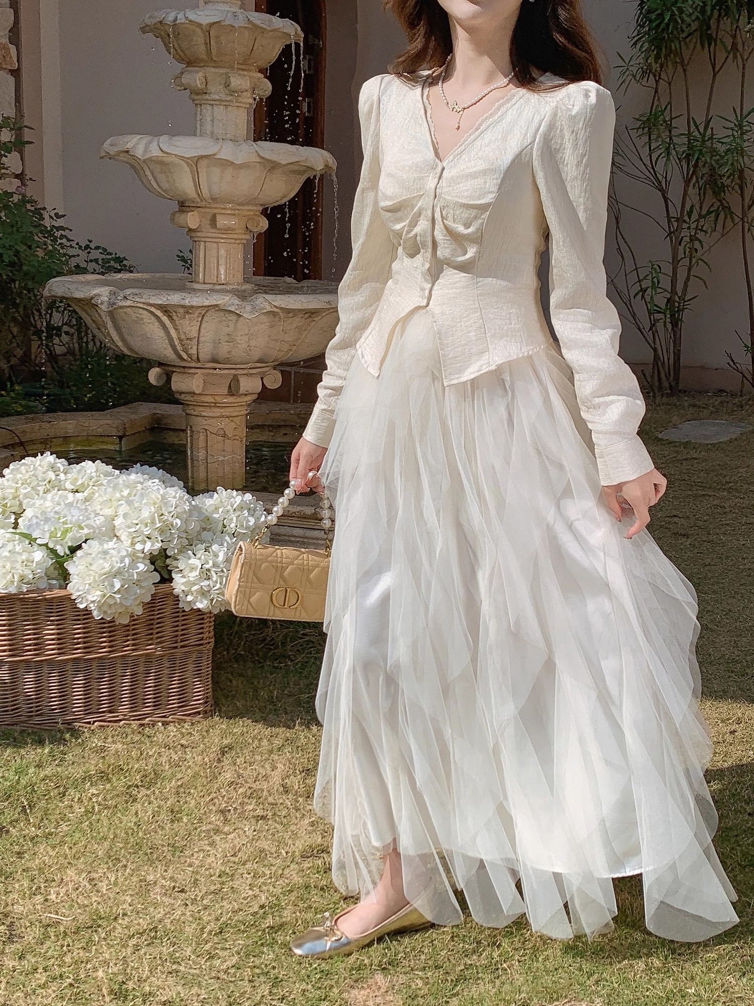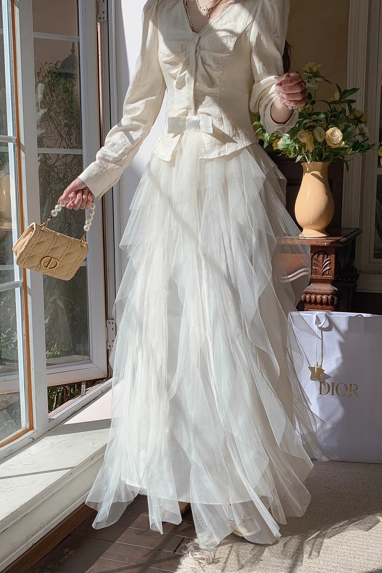张心子【露台圆舞曲】温柔风不规则网纱半身裙 U2501032