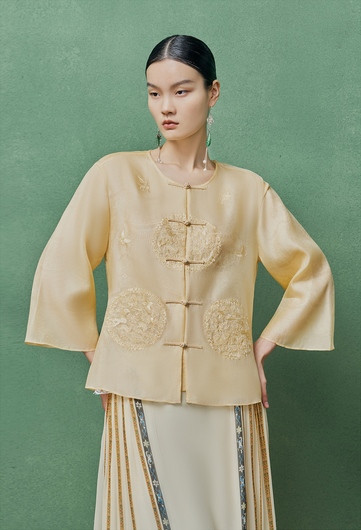 【林栖设计小店】桑蚕丝衬衣绣花传统国风气质宽松2025春夏新品外套上衣女1952099