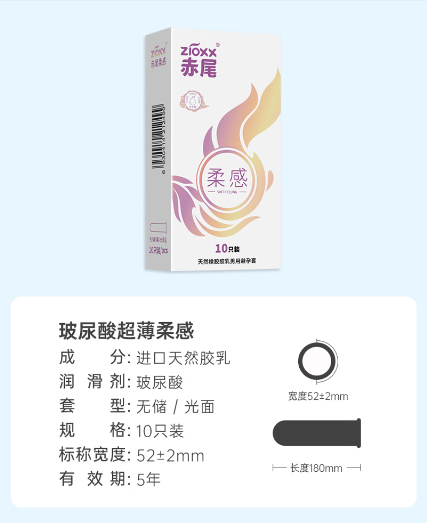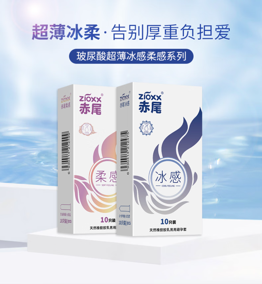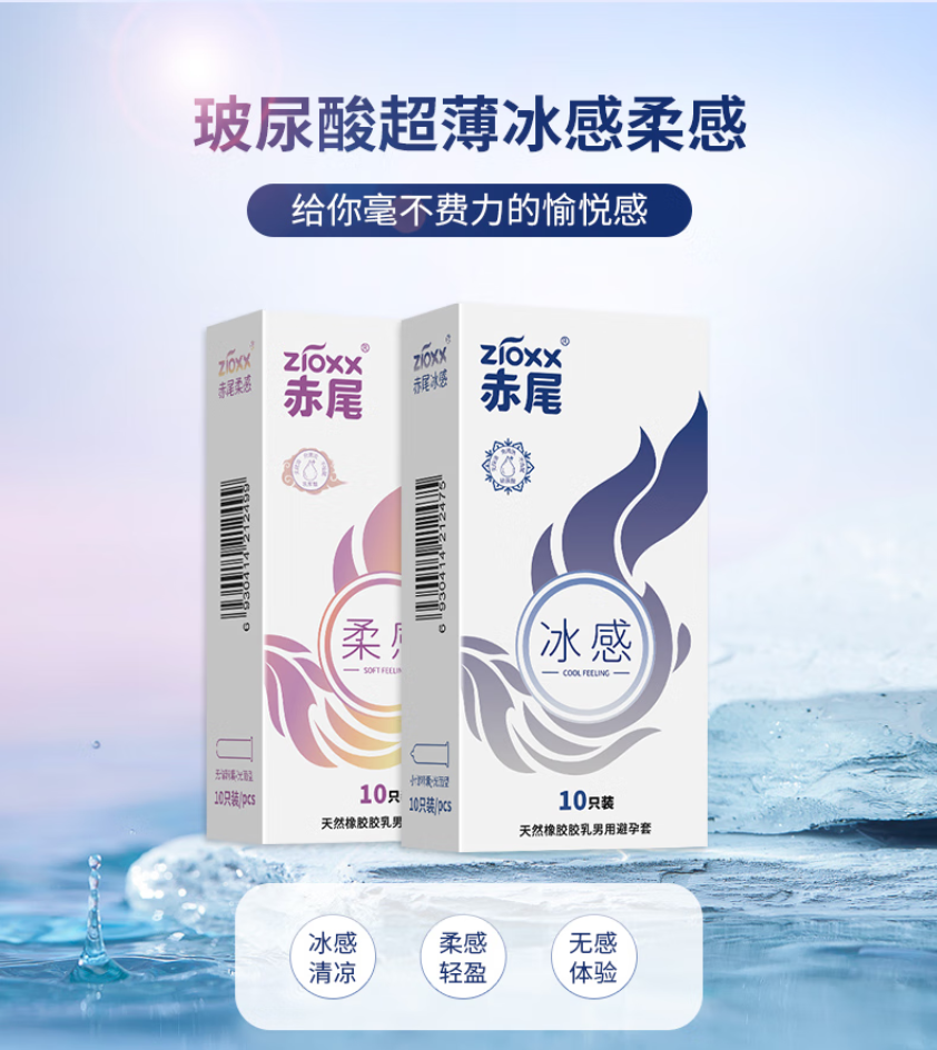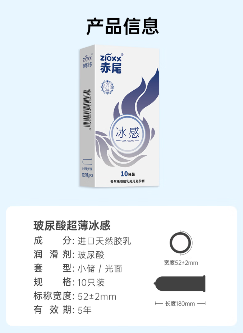 赤尾冰感超薄避孕套10只 玻尿酸润滑安全套 男用成人计生情趣性用品