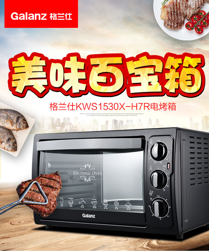 格兰仕(Galanz)家用多功能电烤箱30升 多功能 旋转烤叉 KWS1530X-H7R