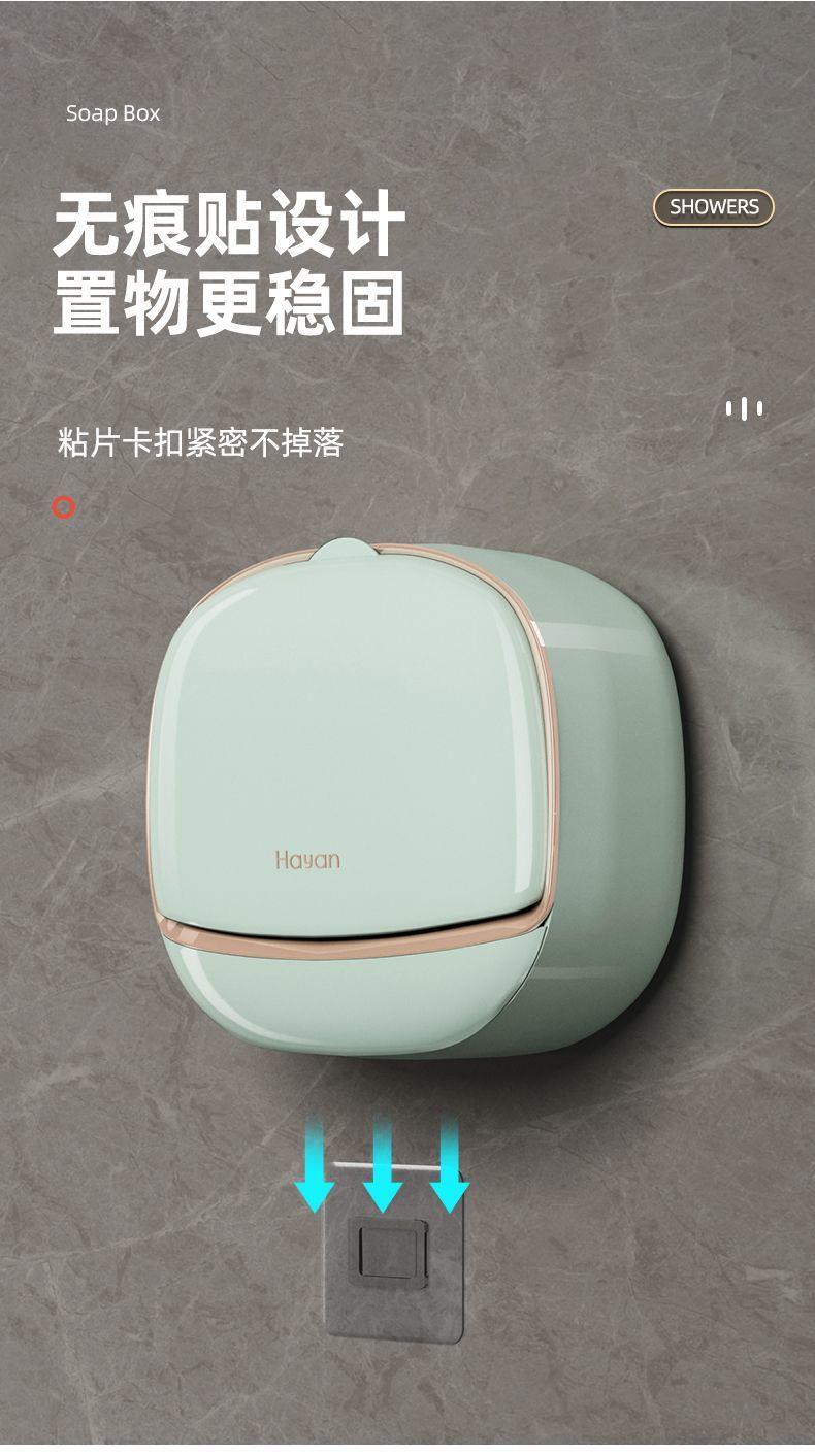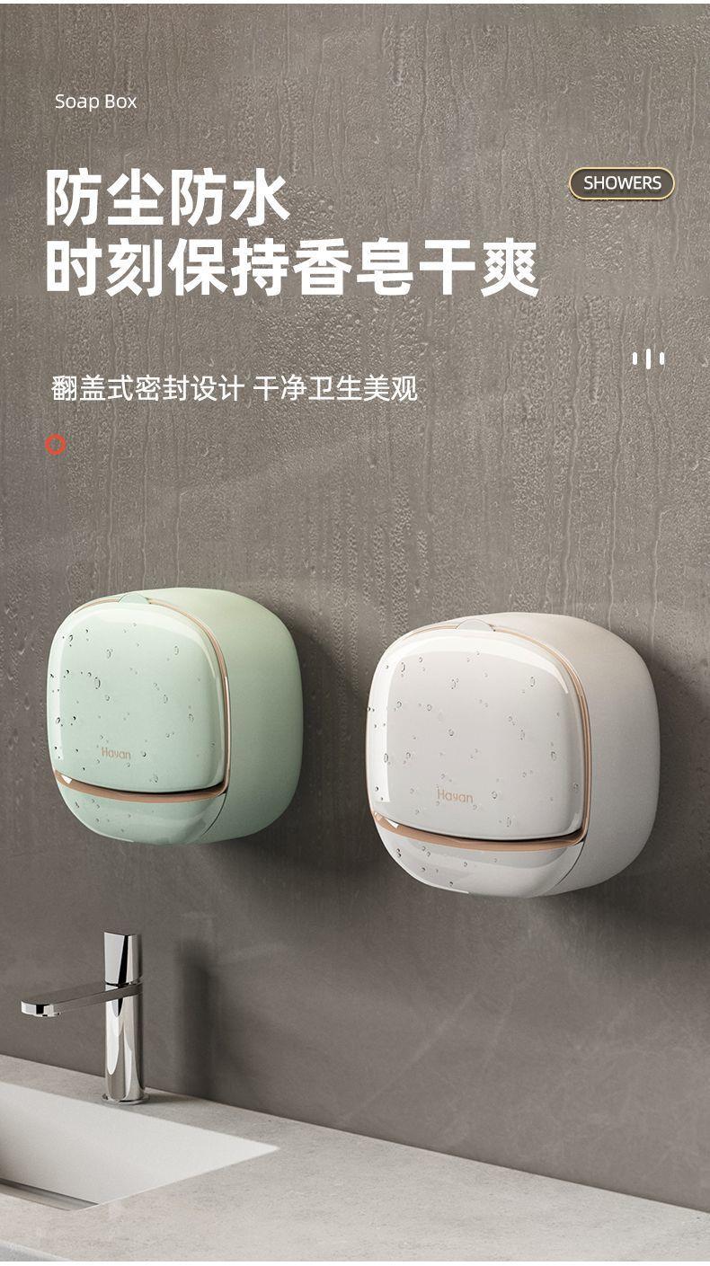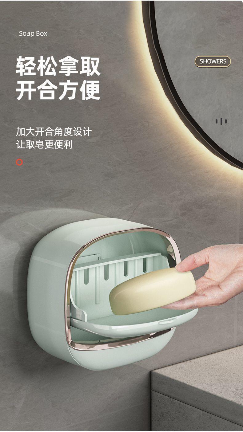轻奢壁挂式香皂盒置物架卫生间沥水家居可拆卸收纳盒翻盖肥皂盒