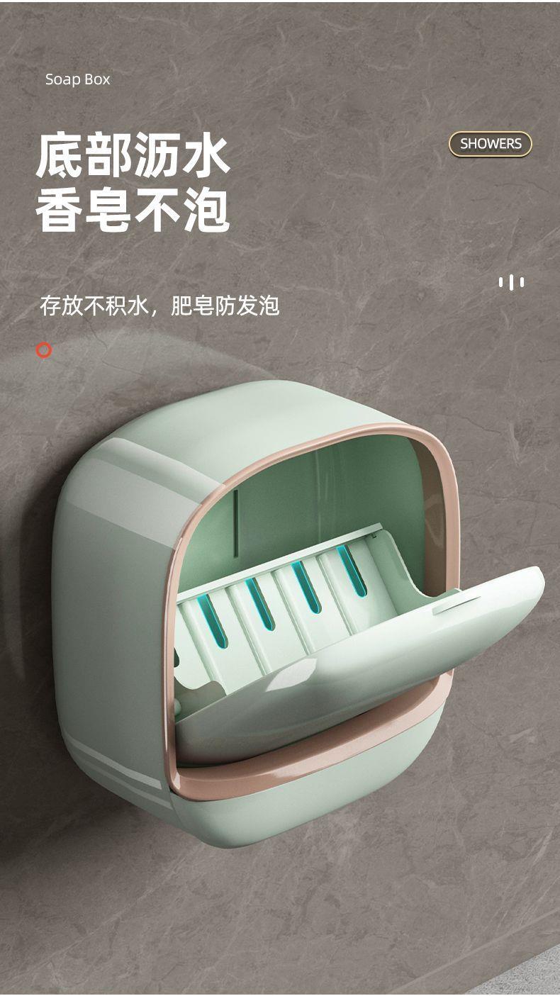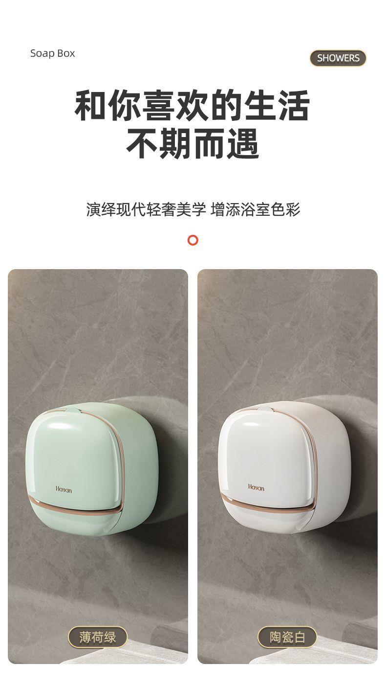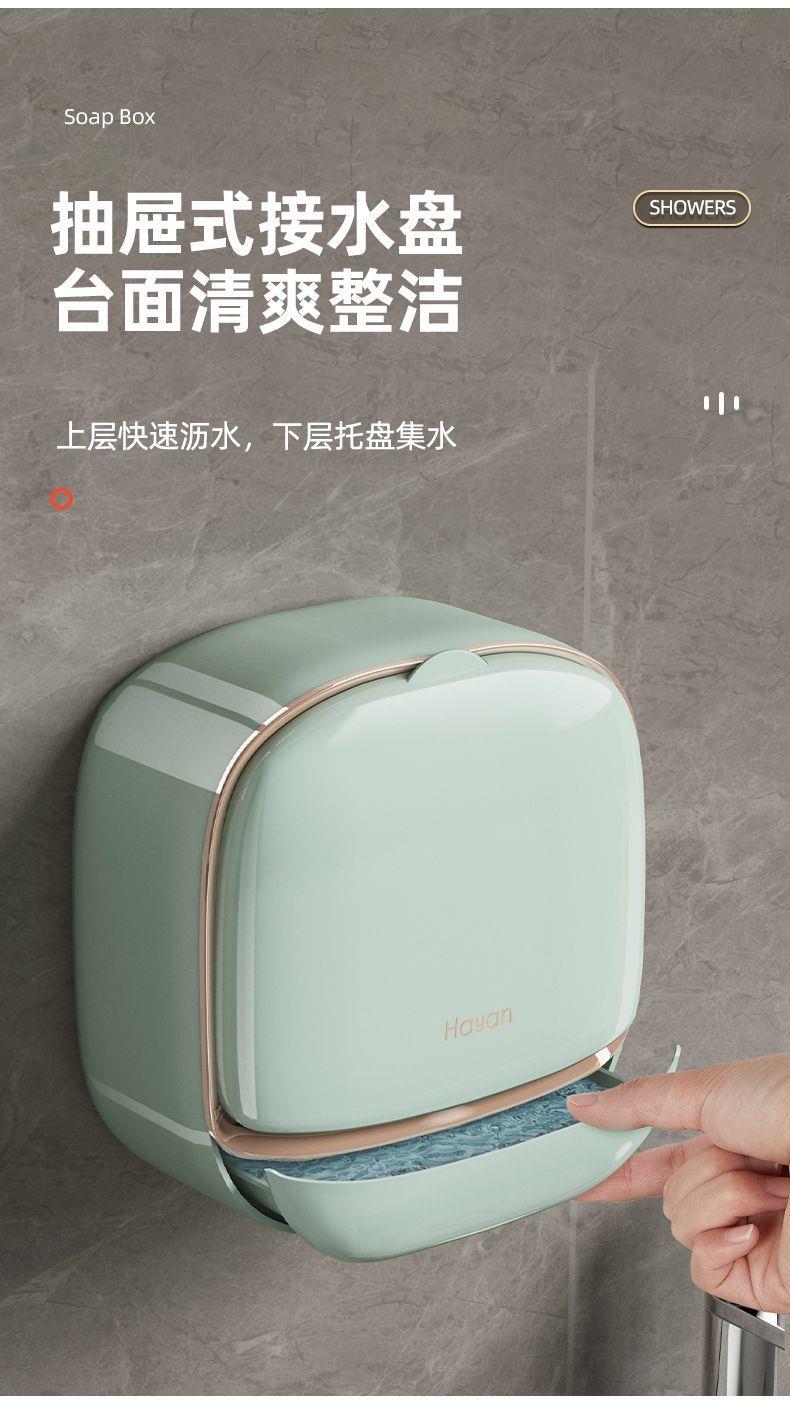 轻奢壁挂式香皂盒置物架卫生间沥水家居可拆卸收纳盒翻盖肥皂盒