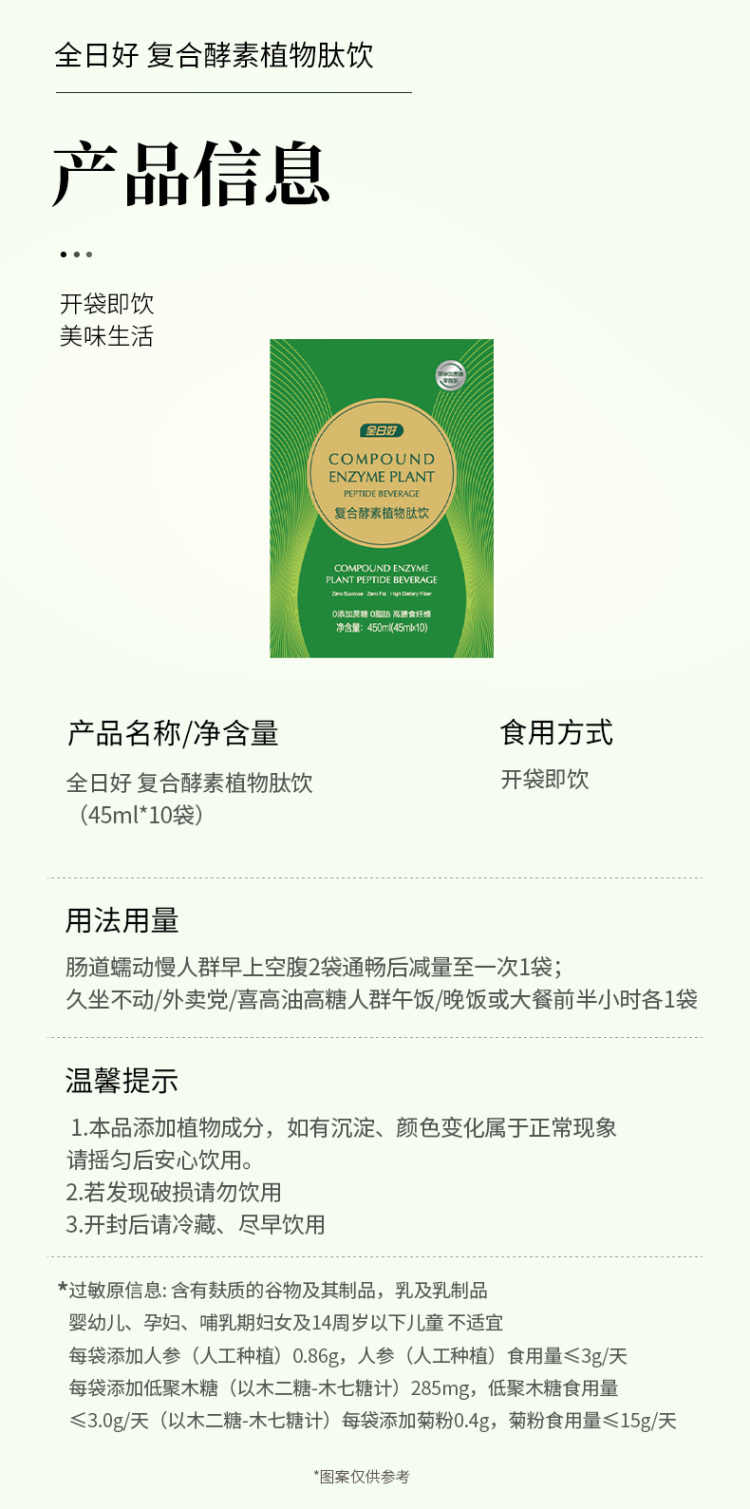 【新春】全日好 复合酵素植物肽饮 (45ml*10袋)