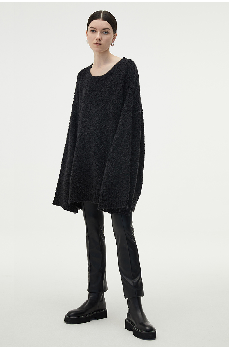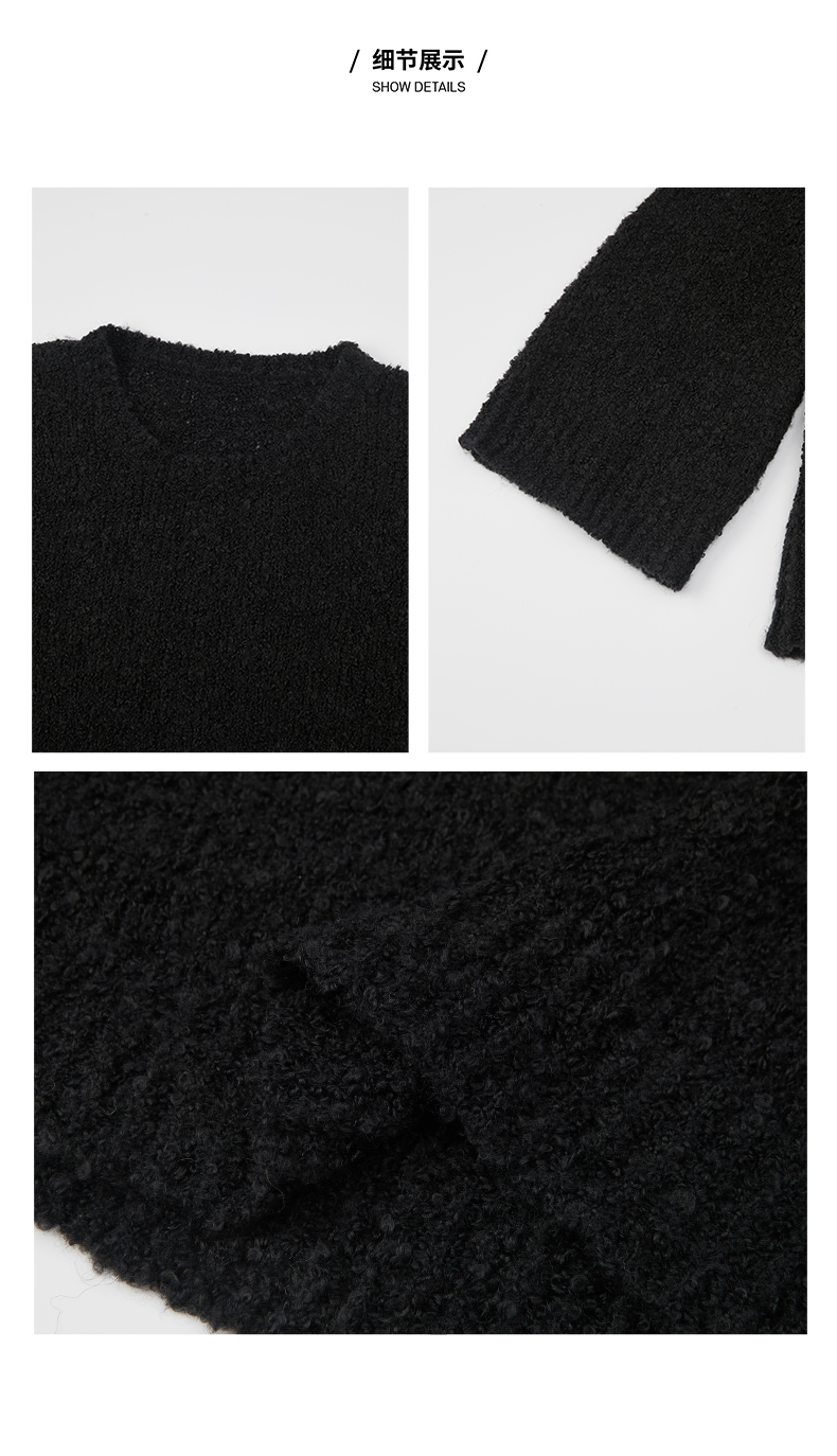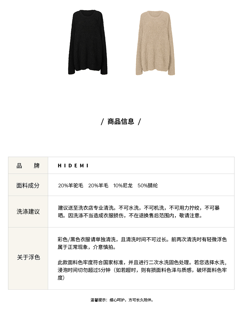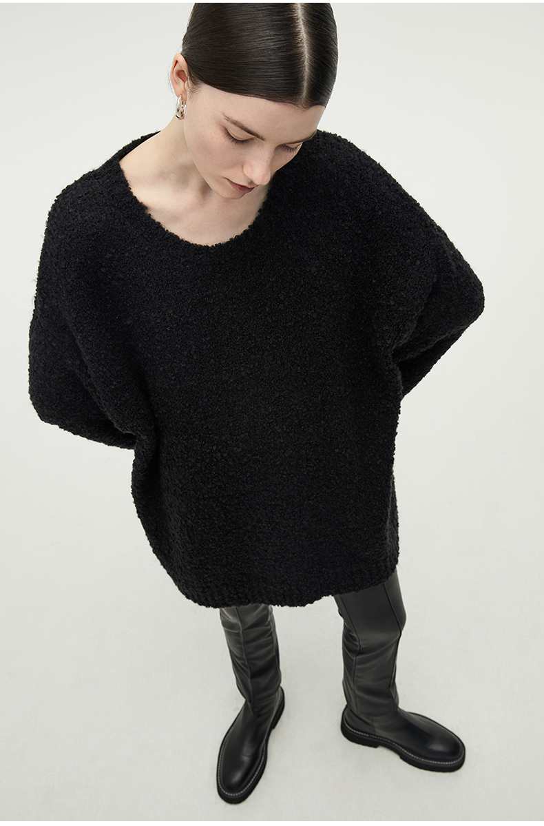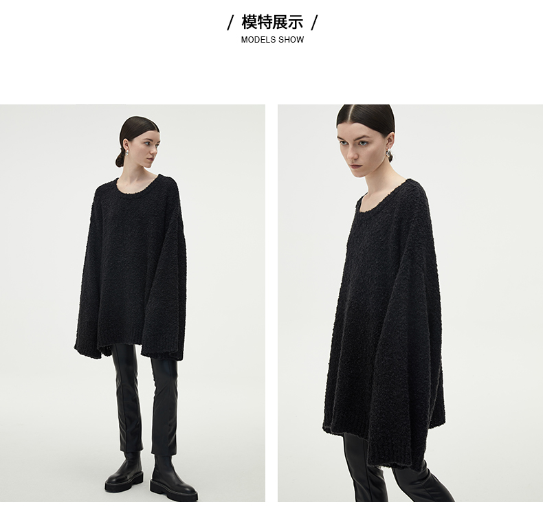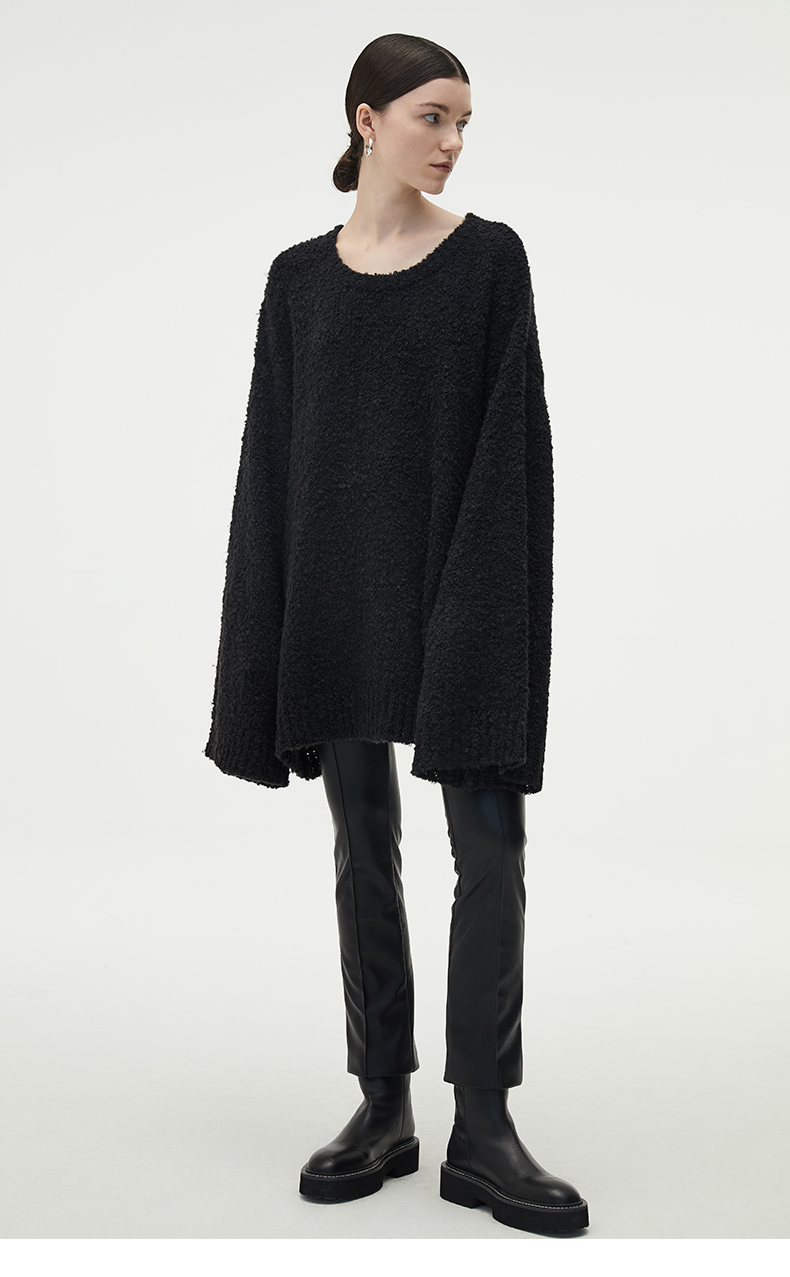 HIDEMI 圈圈羊驼毛粗针宽松毛衣 黑色/自然驼