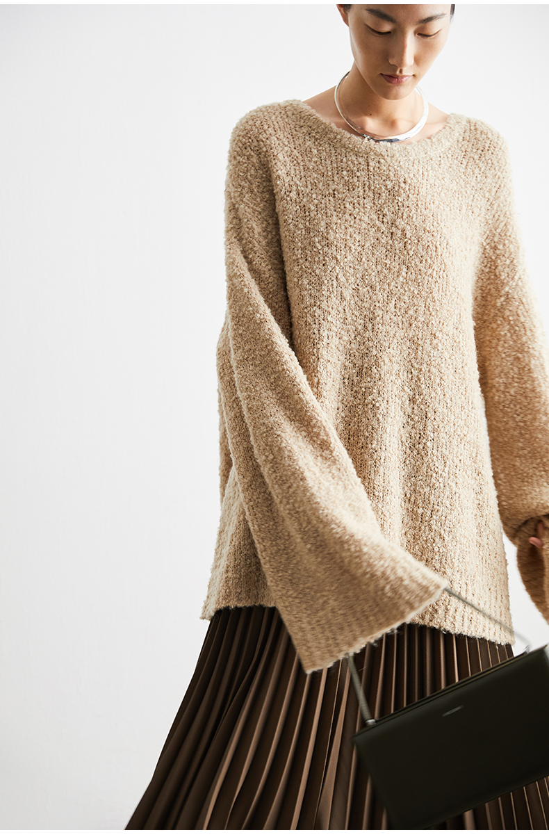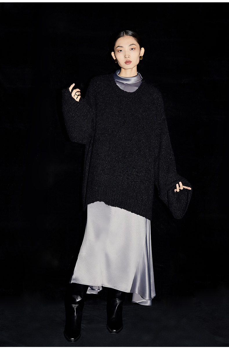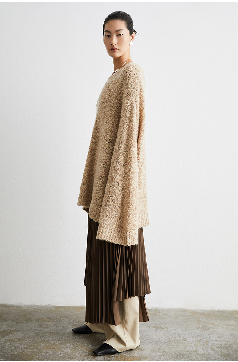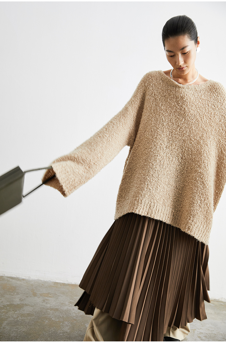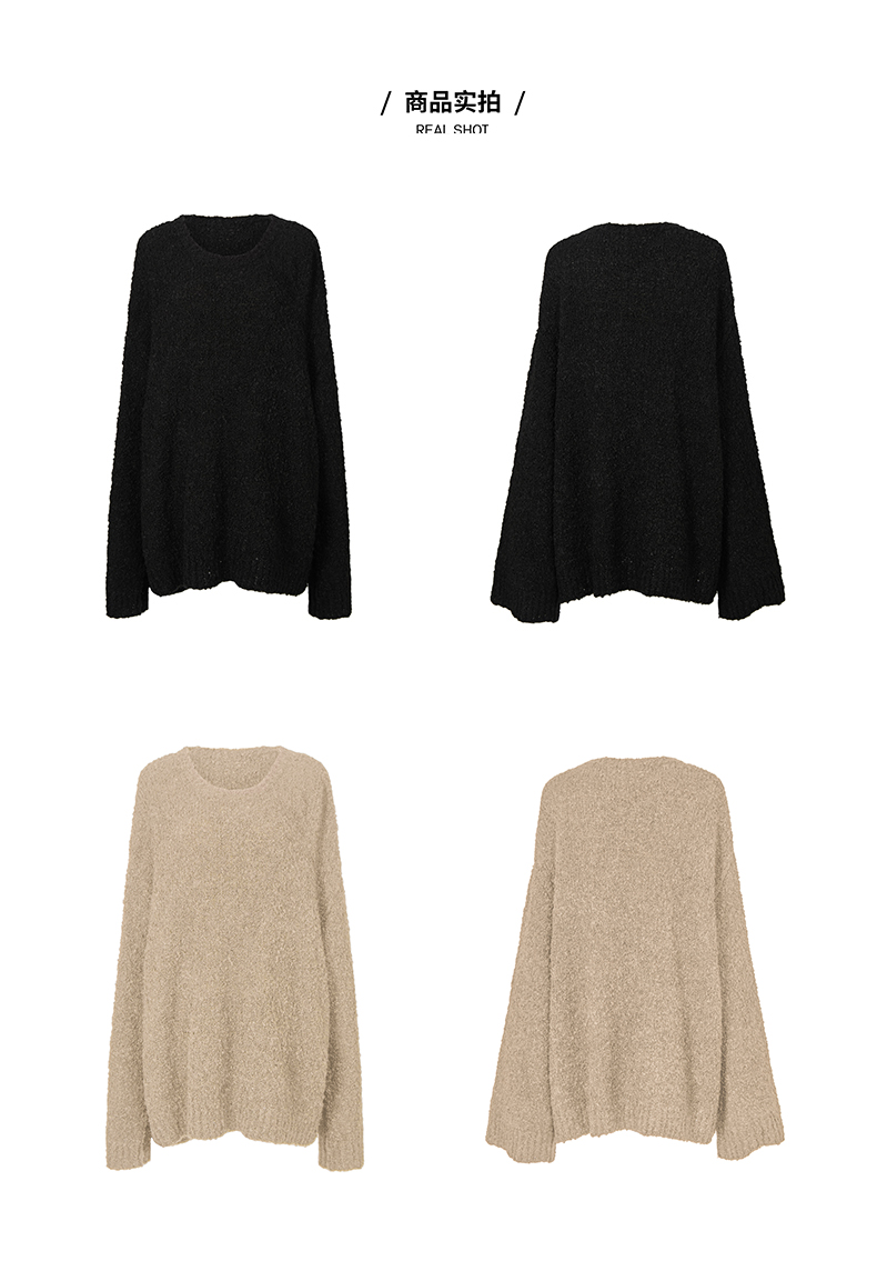 HIDEMI 圈圈羊驼毛粗针宽松毛衣 黑色/自然驼