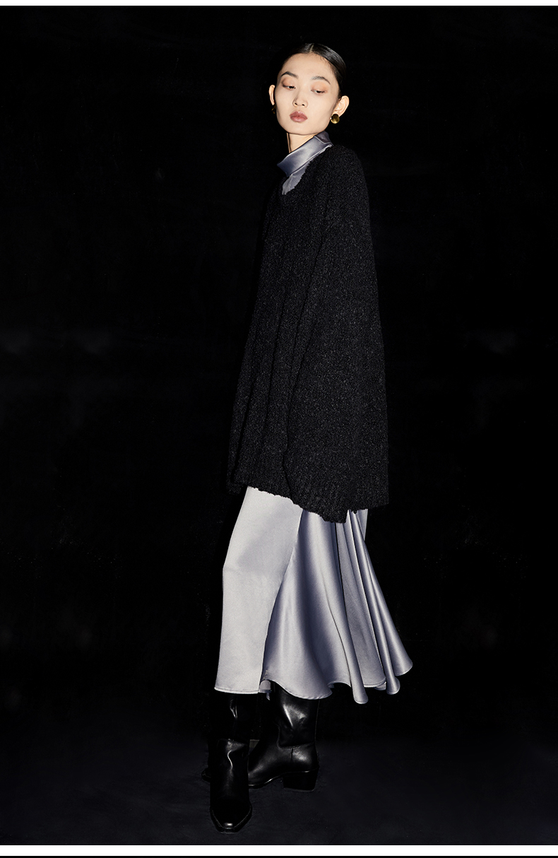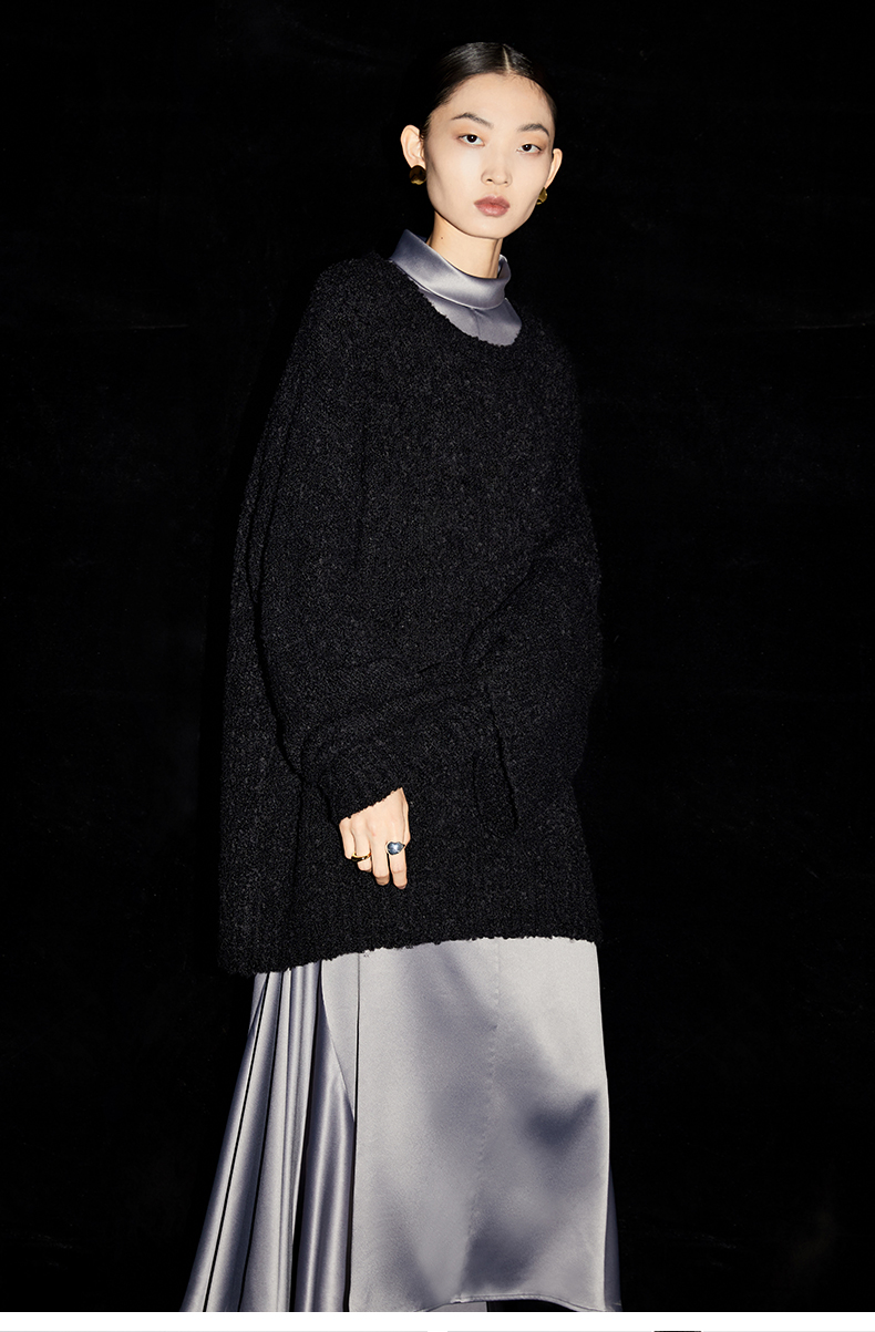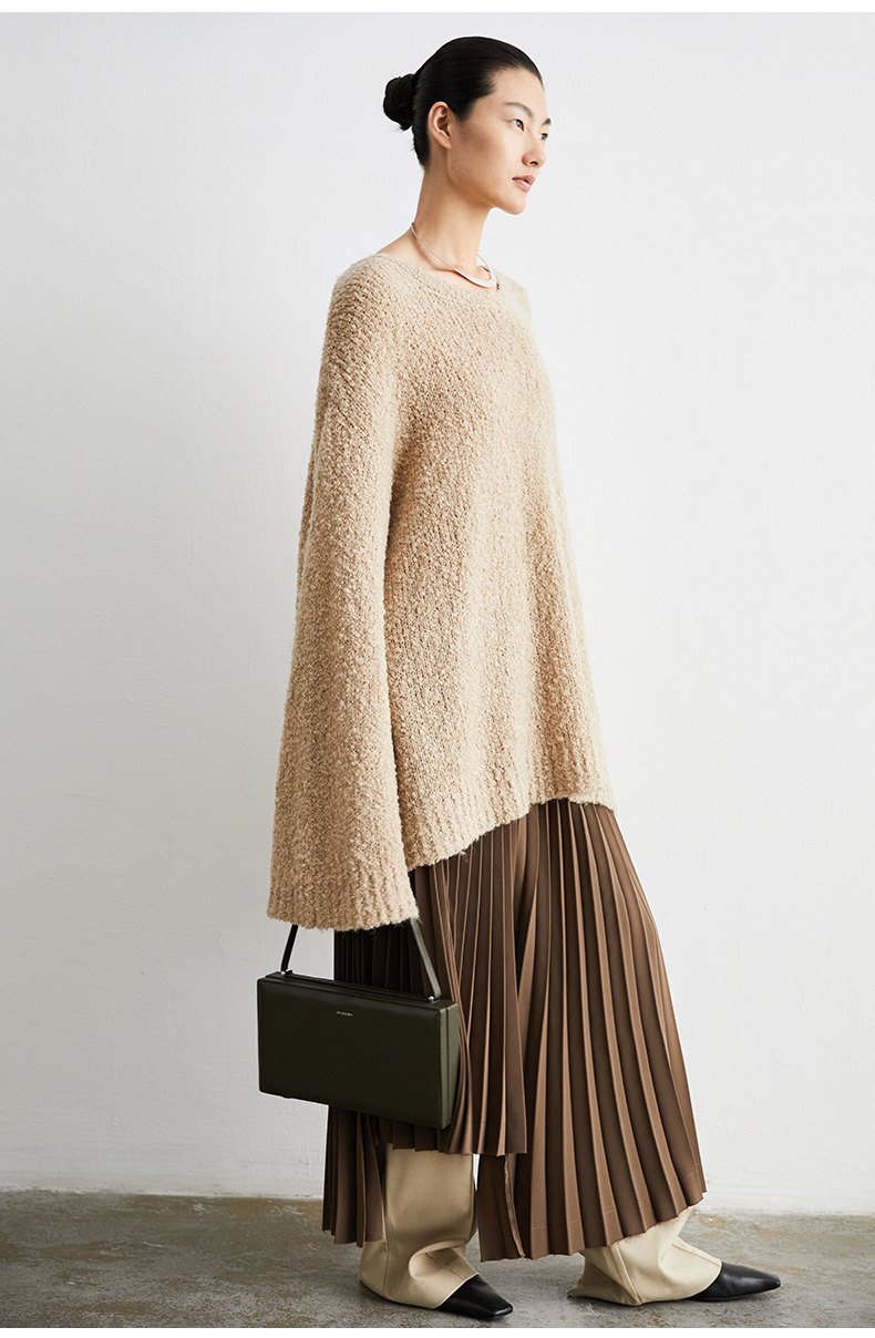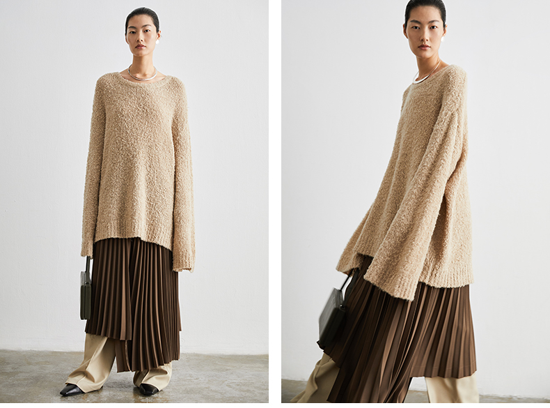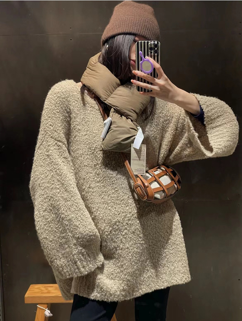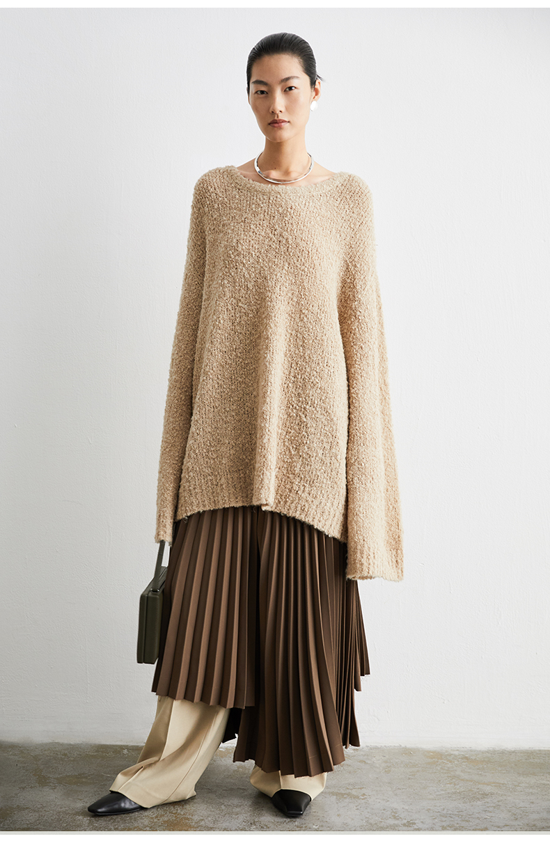 HIDEMI 圈圈羊驼毛粗针宽松毛衣 黑色/自然驼