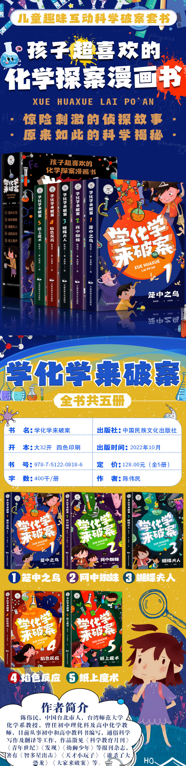 爆款再版!陈伟民老师力作!《学化学来破案》全5册 读解谜故事知晓化学真相!