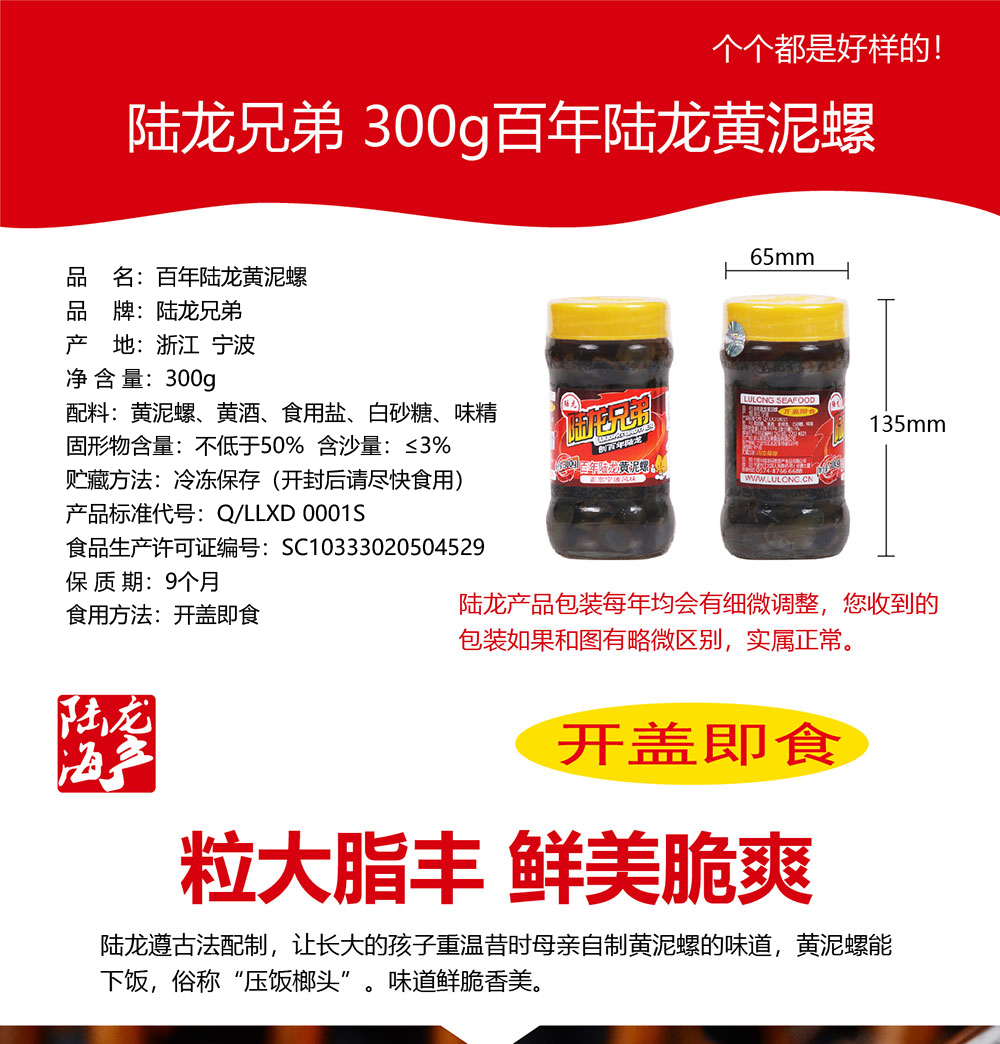 6198陆龙兄弟300g百年陆龙黄泥螺