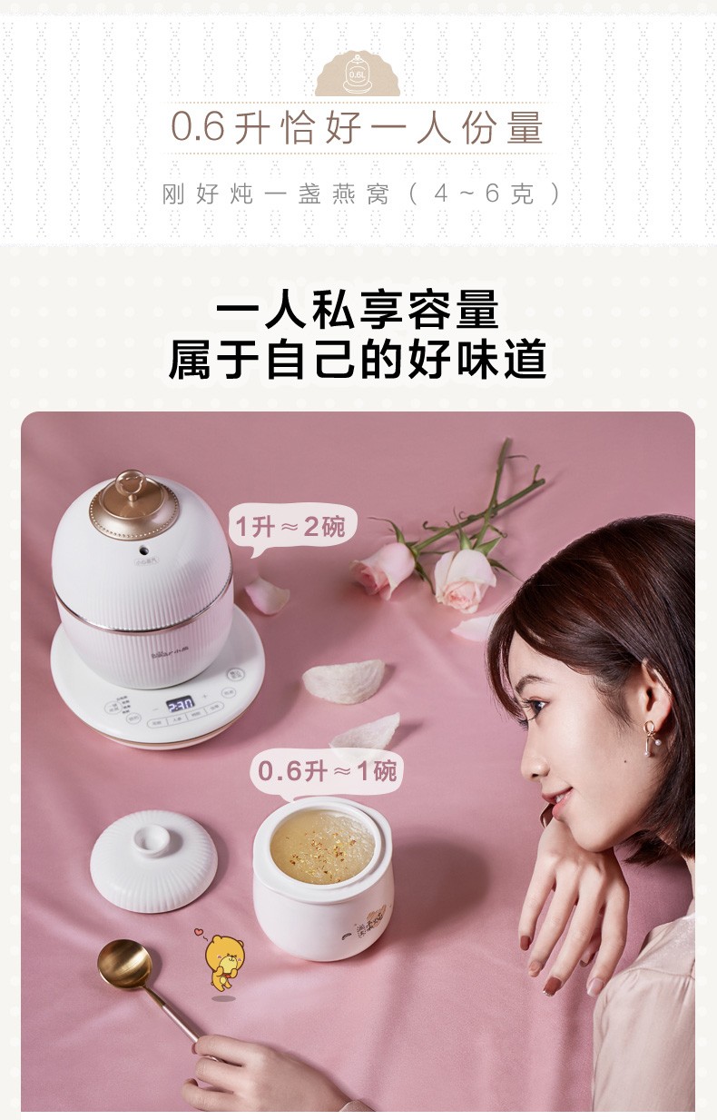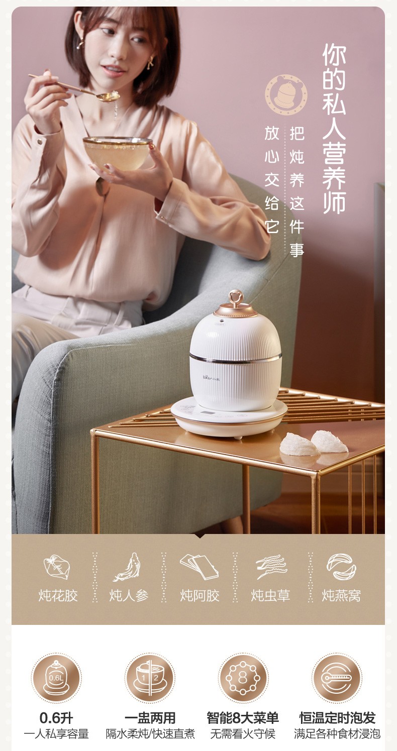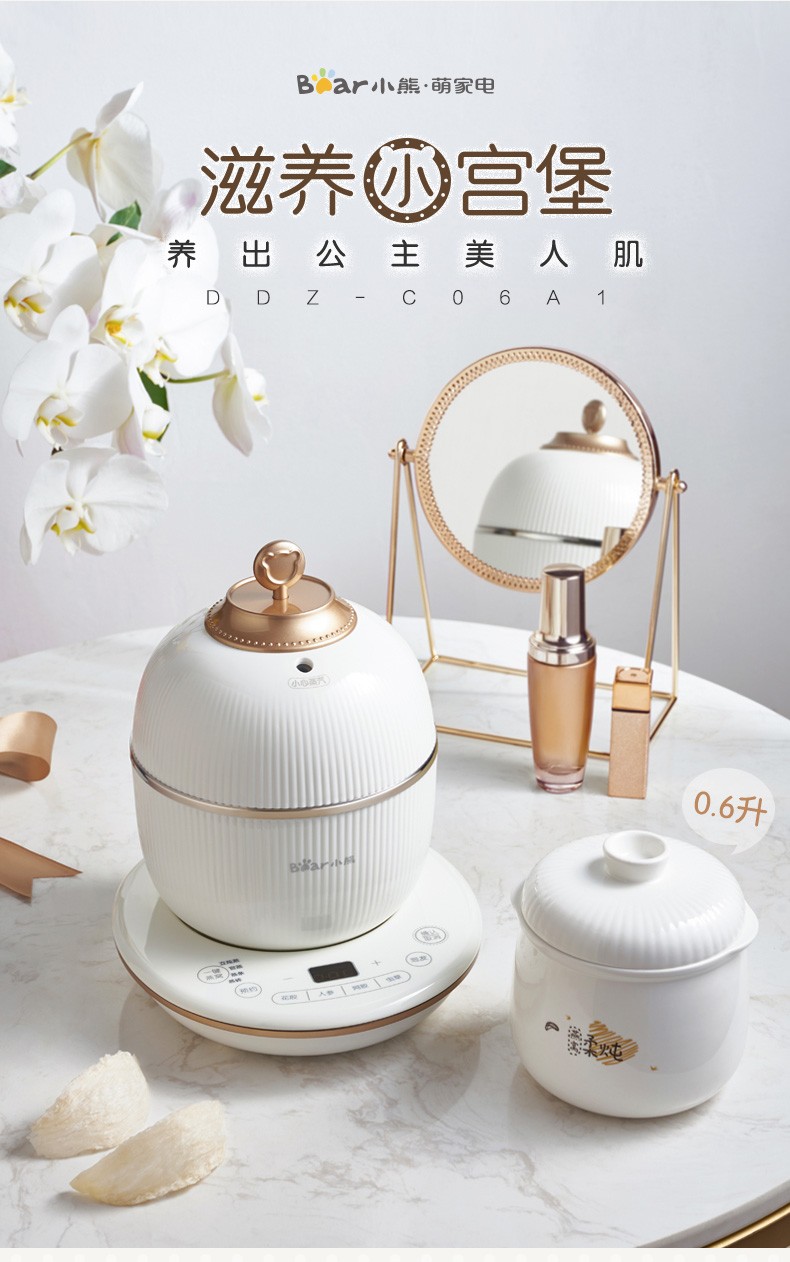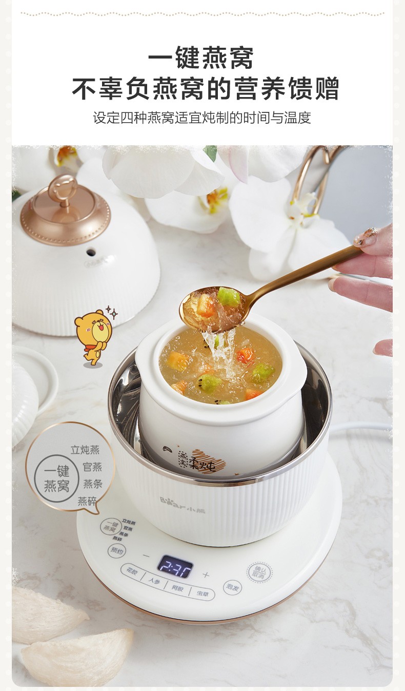 小熊(Bear) 电炖盅 电炖锅 燕窝炖盅隔水炖养生煲自动泡发阿胶参材炖盅 DDZ-C06A1 高端燕窝炖盅