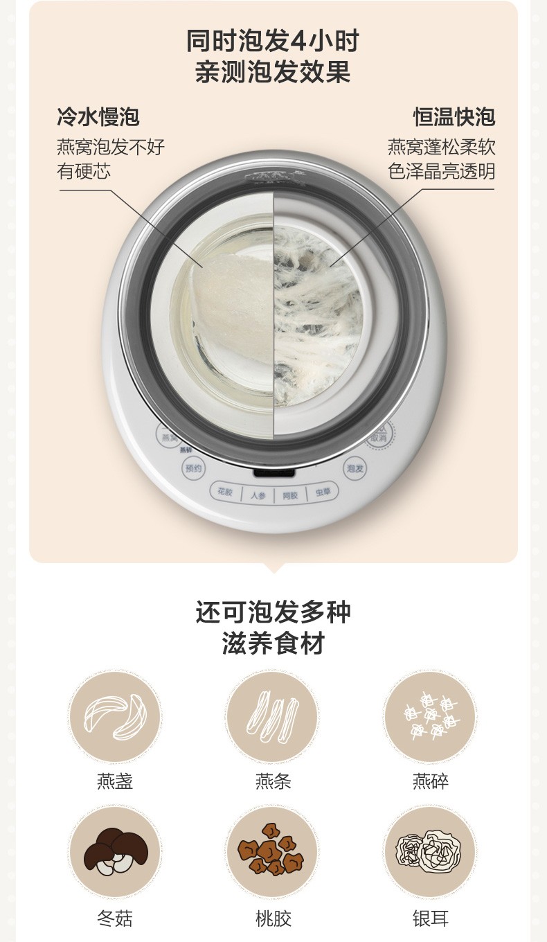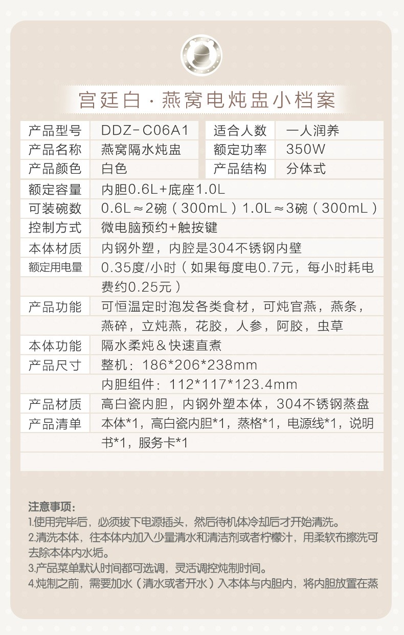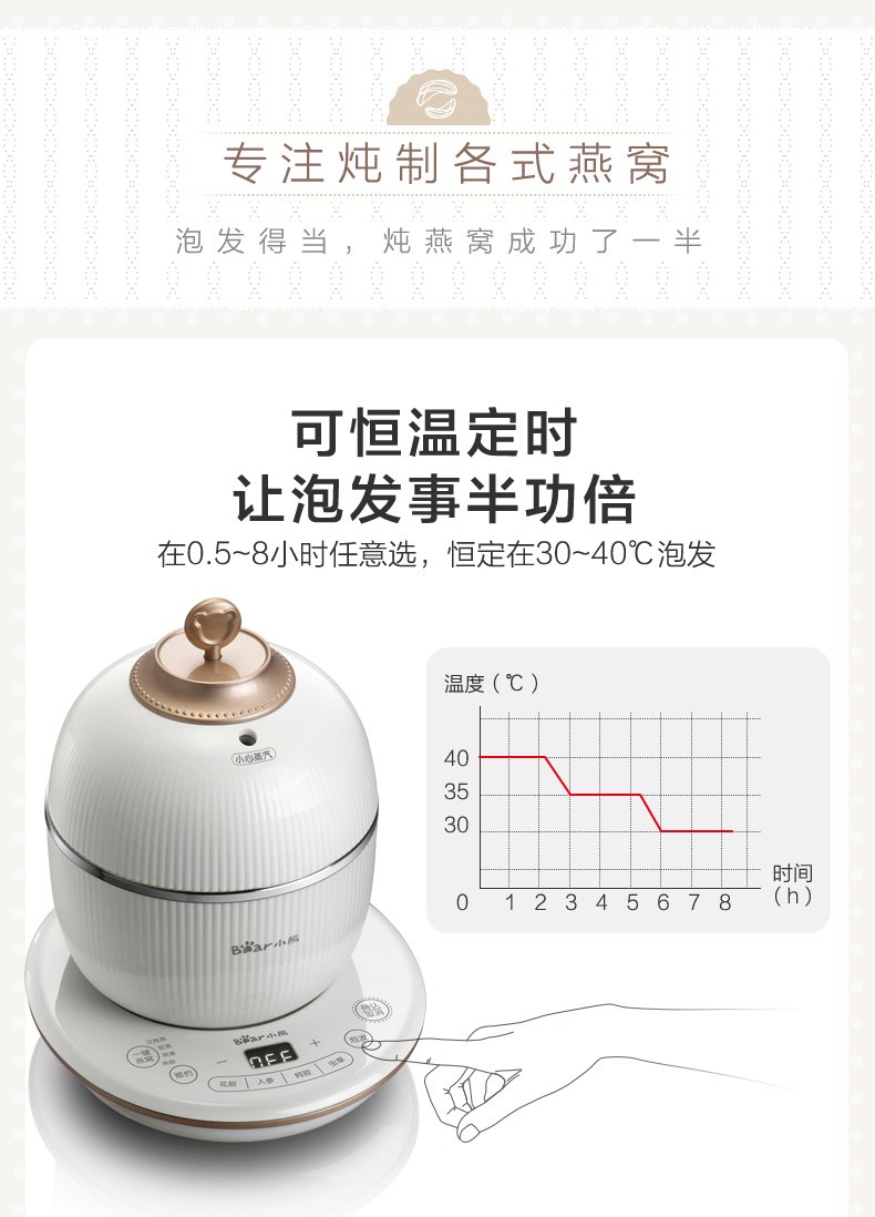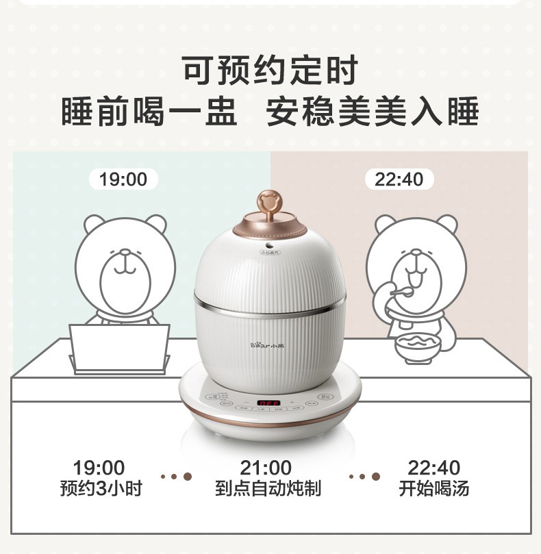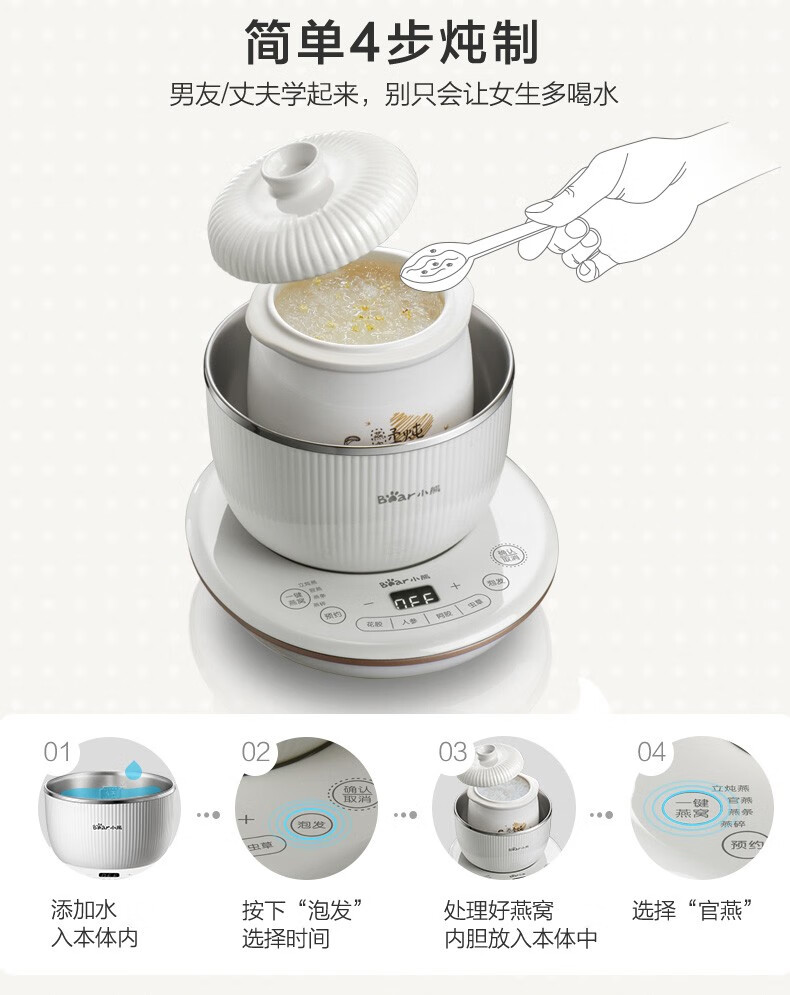 小熊(Bear) 电炖盅 电炖锅 燕窝炖盅隔水炖养生煲自动泡发阿胶参材炖盅 DDZ-C06A1 高端燕窝炖盅