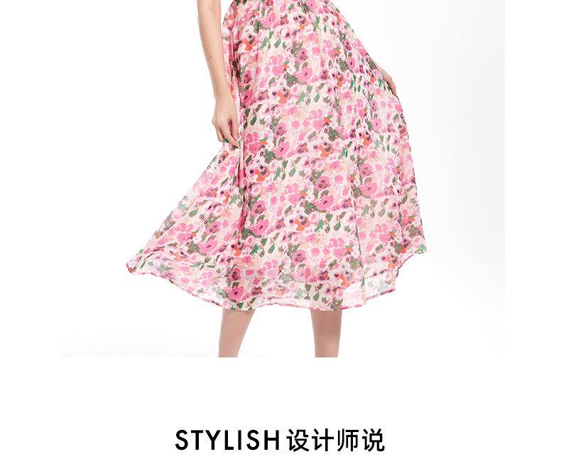 皮尔卡丹女装夏季新款蕾丝拼接淑女连衣裙P1248D1055L3