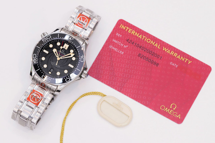 日历窗口中的数字7使用与007标志相同的字体,当手表在黑暗中时,可以看到10点钟位置带有“50”的刻度,以纪念电影上映50周年。表壳侧面的旋入式表冠做工精致,您可以通过松开表冠轻松调整时间,可以开一档上发条,二档调日历,三档调时分针,调好时间后,拧入并拧紧,起到防水防尘的作用。