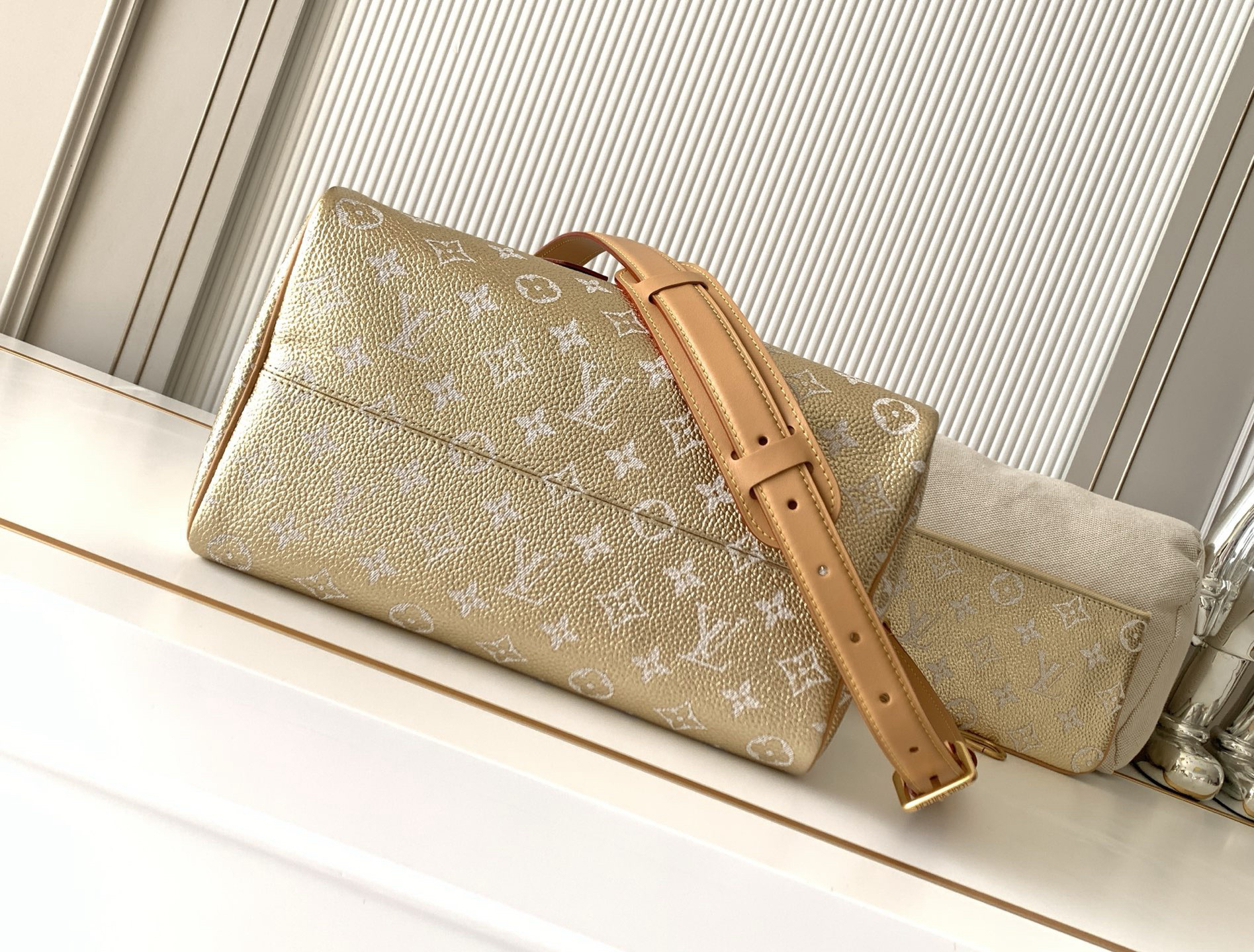 秋冬特惠💰1670 渠道级LV【全钢五金 MB163c01变码芯片】te级LV 全套包装 M14064金色 本款Speedy P9 Bandoulière30手袋于细腻牛皮革表面描绘