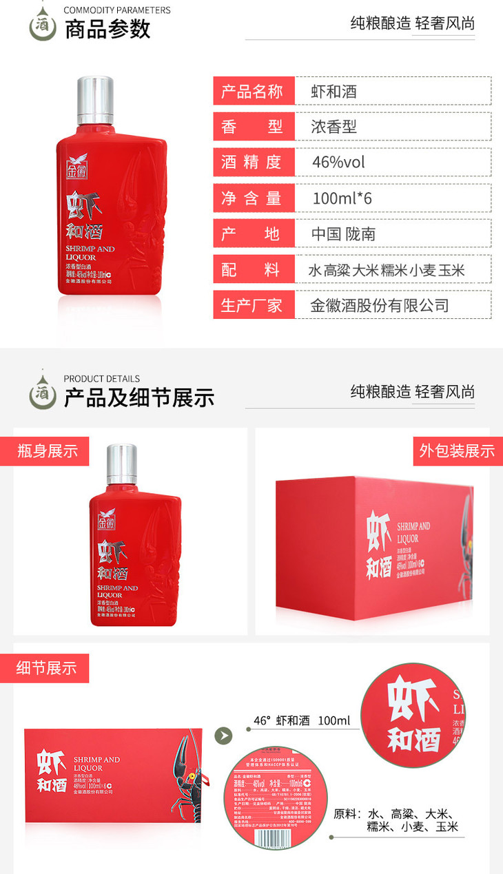 【积分兑换】金徽酒 46度虾和酒  100ml 浓香型白酒 商品图2