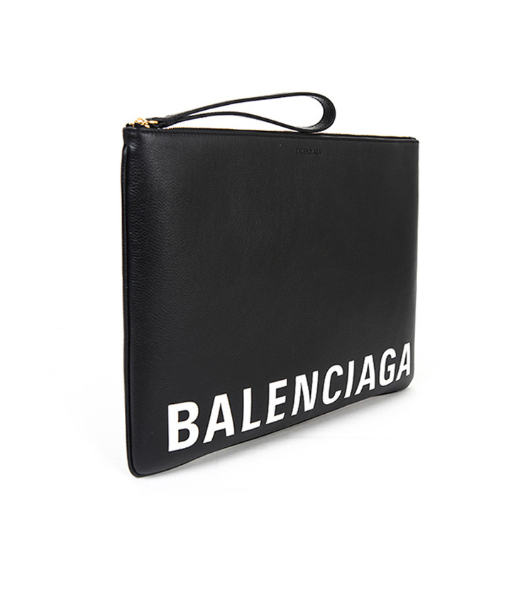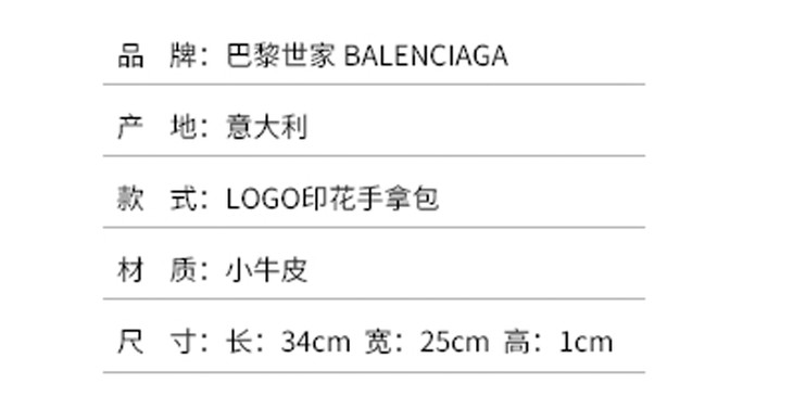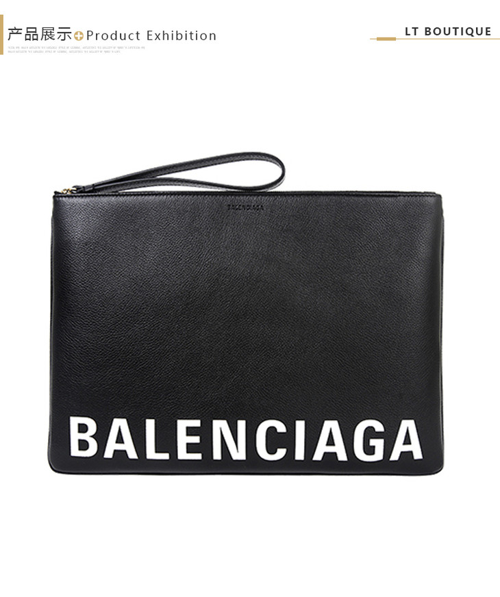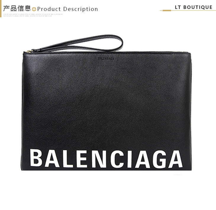 BALENCIAGA 巴黎世家 春夏男女通用黑色小牛皮LOGO印花手拿包 黑色 594350 1IZCM 1090