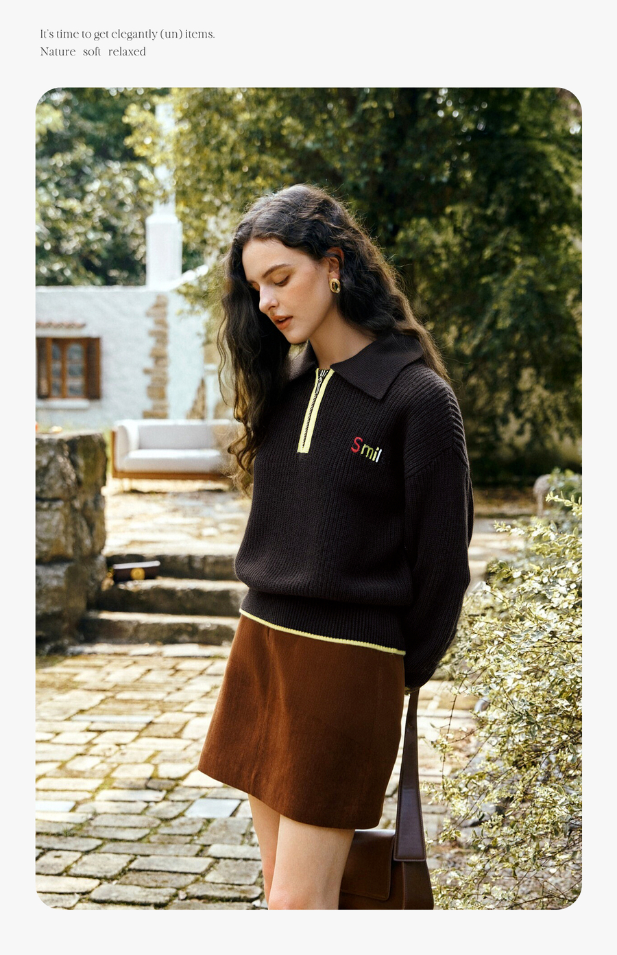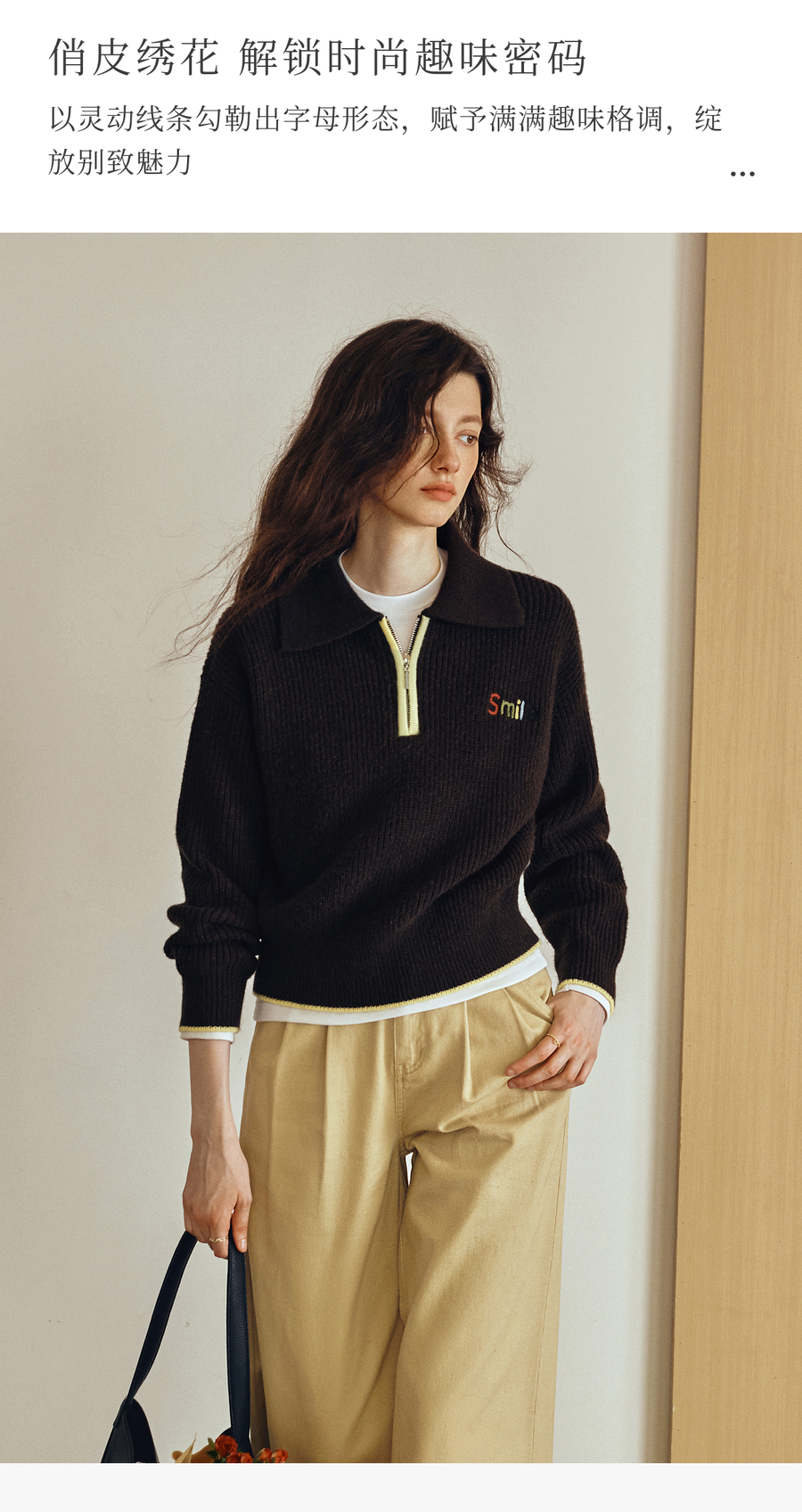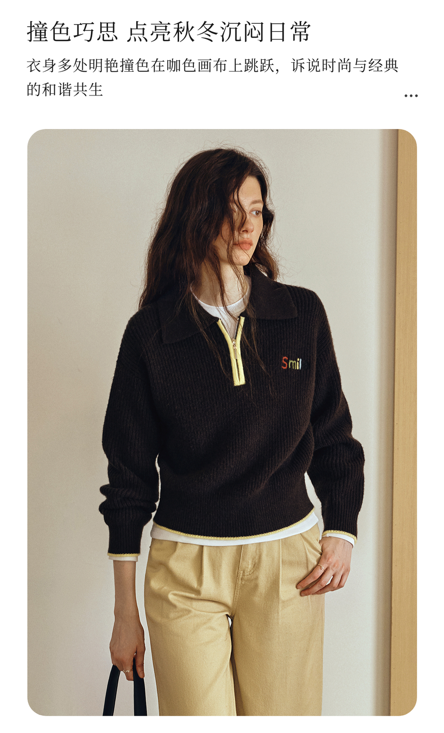 OLrain欧芮儿2025新款女秋季POLO领宽松休闲毛织套头衫宽松上衣