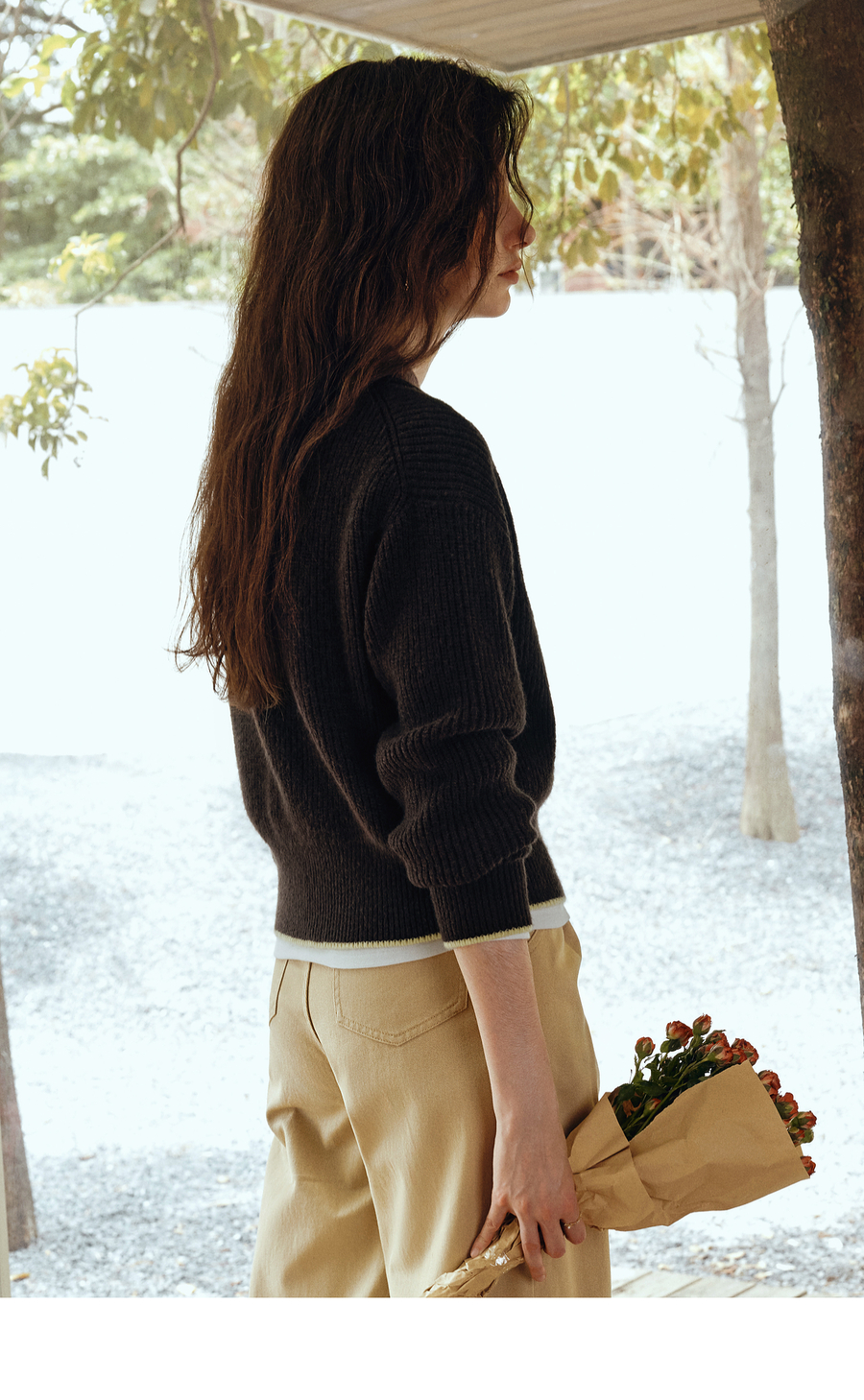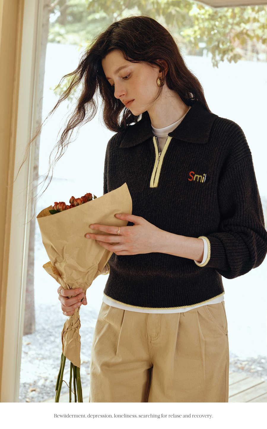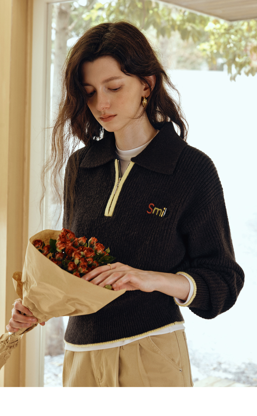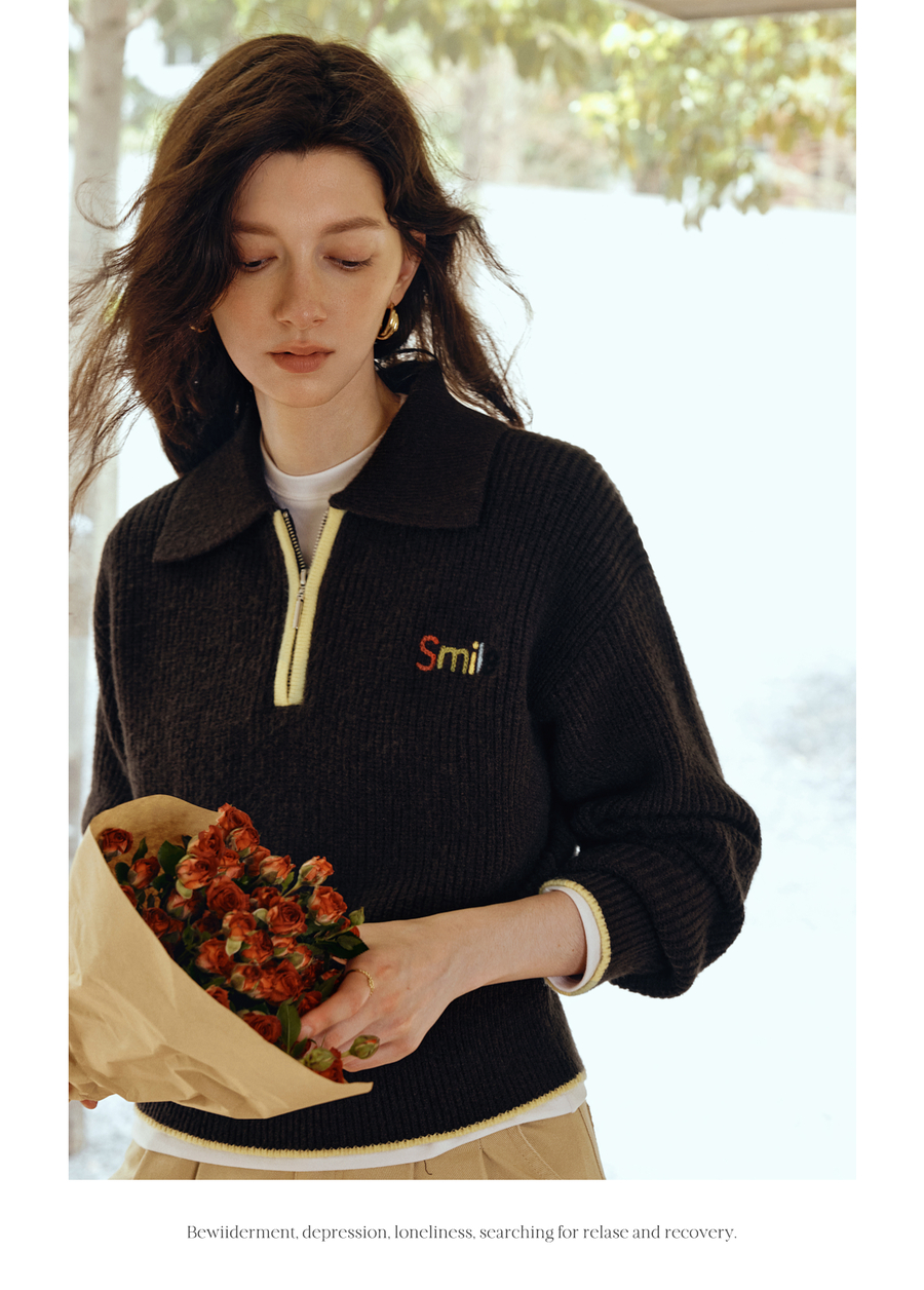 OLrain欧芮儿2025新款女秋季POLO领宽松休闲毛织套头衫宽松上衣