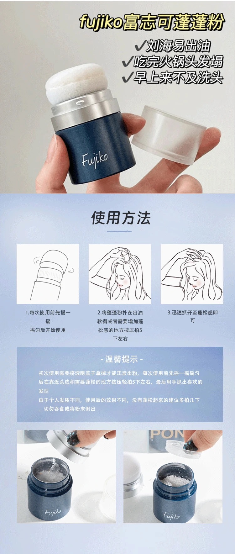 日本fujiko ponpon头发蓬蓬粉蓝色清爽款 /星河粉色款 男女头发刘海去油腻免洗蓬松粉
