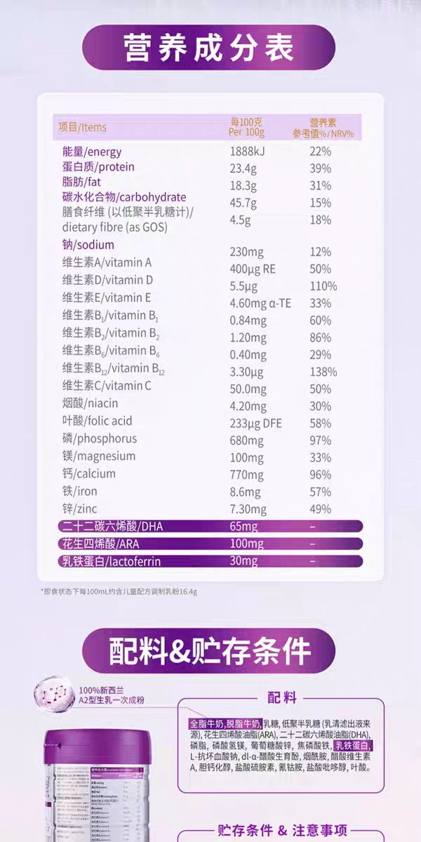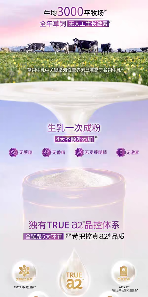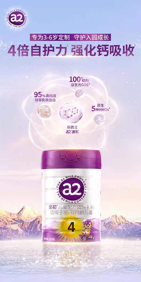 至初a2儿童配方调制奶粉 (4段36-72月龄)新国标850克*6罐新西兰原装进口