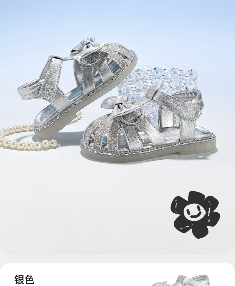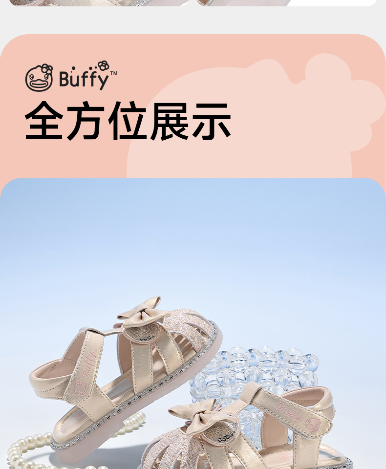 B.Duck小黄鸭童鞋女童凉鞋夏季透气儿童公主鞋宝宝沙滩鞋22-26 F2686878