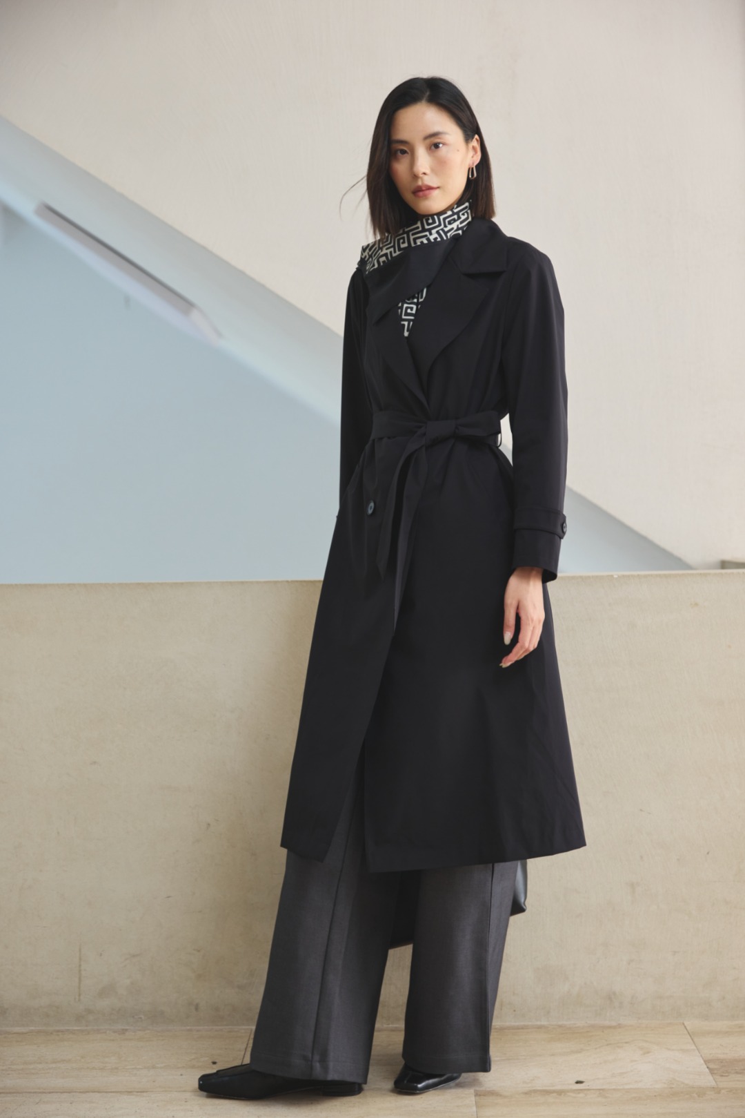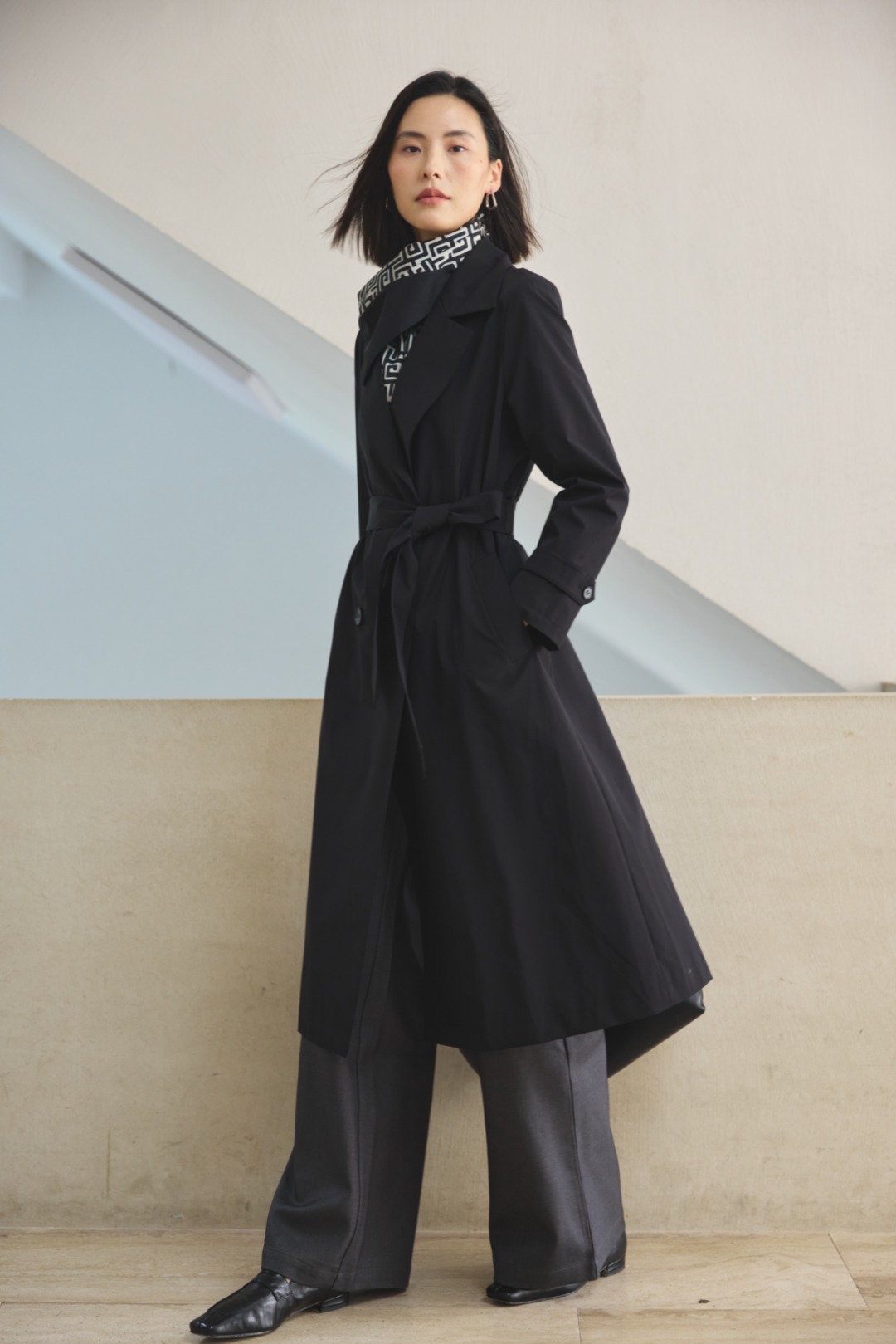 带围巾设计风衣