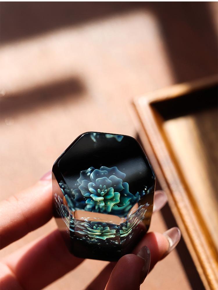 丰子汝窑【花瓣杯】陶瓷茶杯泡茶杯主人杯开片可养汝瓷品茗杯 125ml