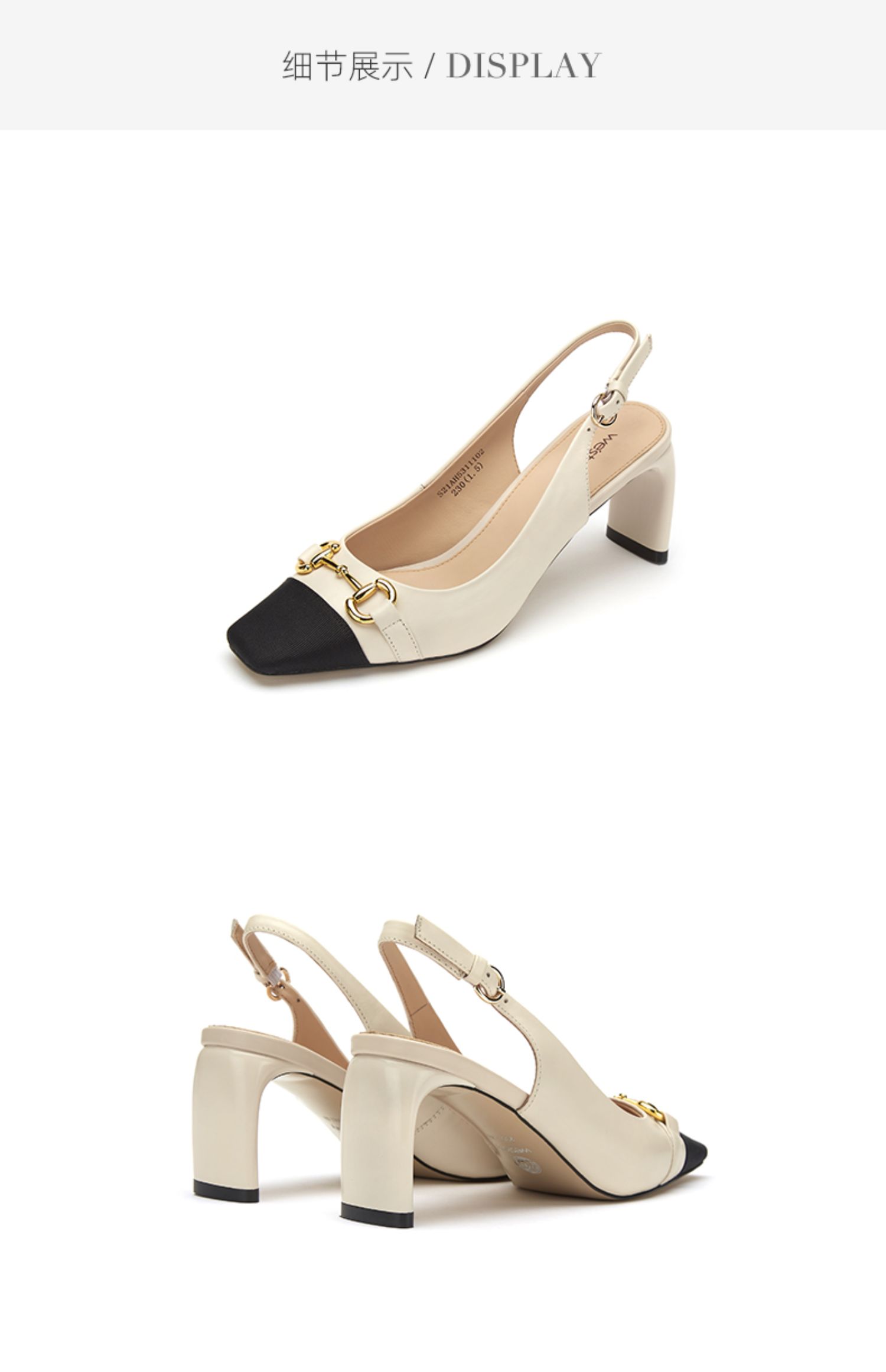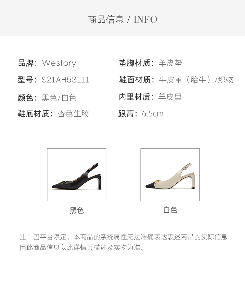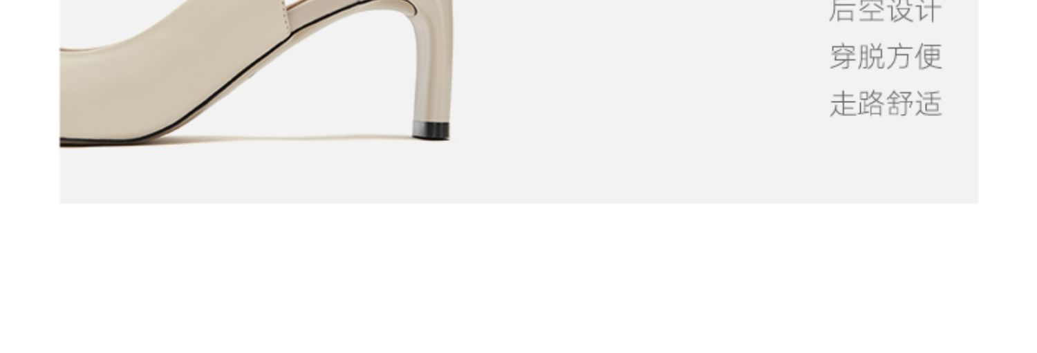 westory女鞋2021春季新款小牛皮凉鞋方头高跟后空单鞋S21AH53111
