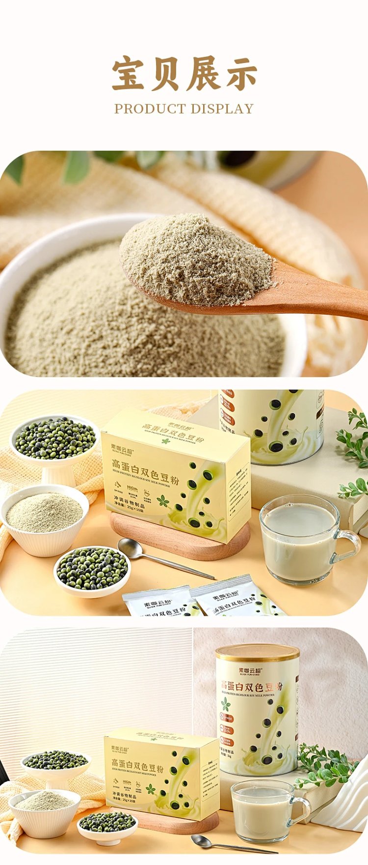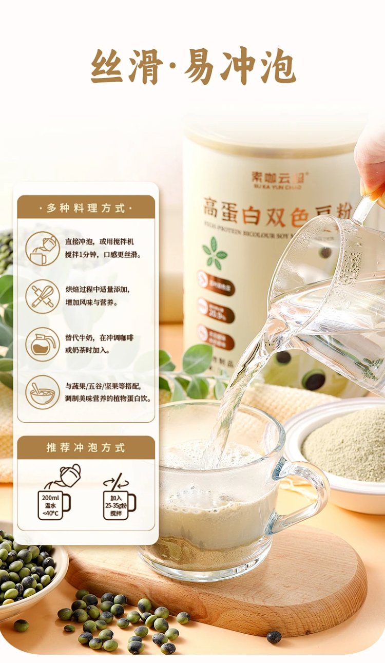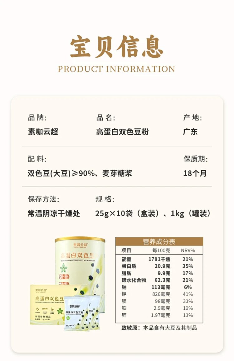 高蛋白双色豆粉 盒装250g/罐装1kg 素咖云超溯源 0嘌呤 含氨基酸 植物奶 16道精粹工序 保留天然营养 无豆腥味 SGS检验零250项农残 可当营养奶也可做烘焙、酸奶、料理 [漳州仓]