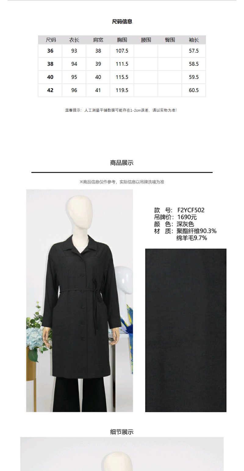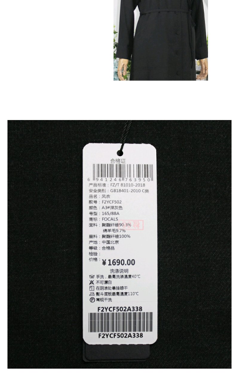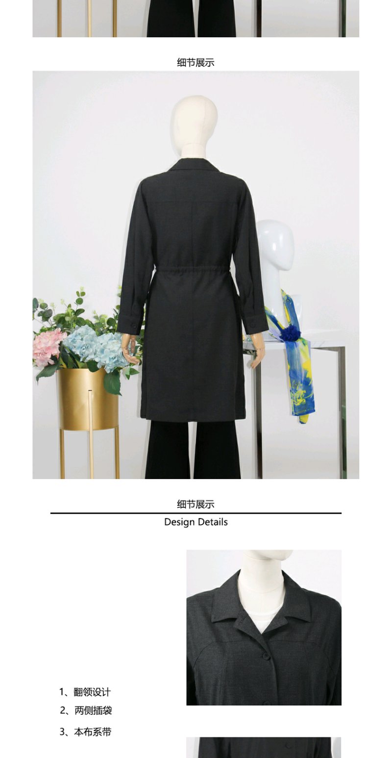 FOCALS福柯斯春秋新款休闲薄款羊毛混纺中长款外套风衣F2YCF502A3