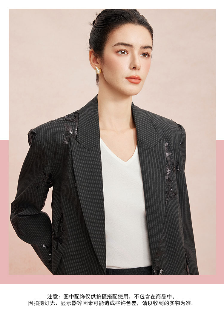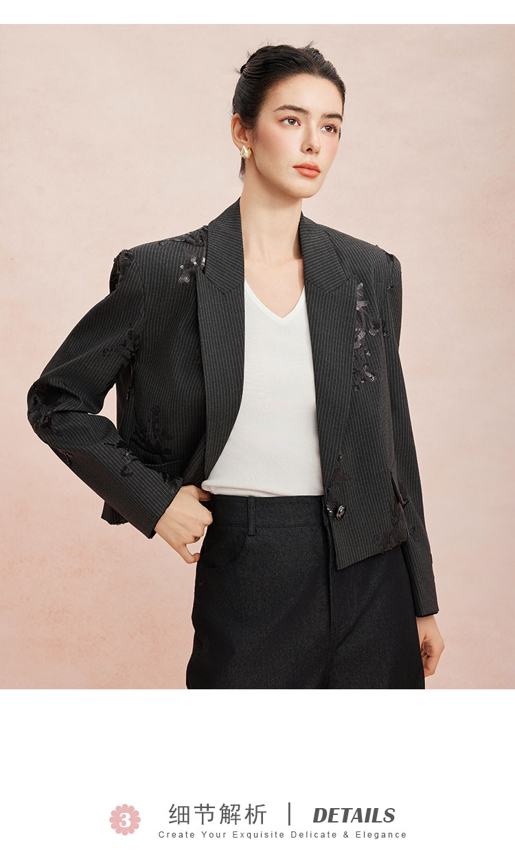 RE1A1斯尔丽25春季新款绣花绣亮片工艺箱式短款时尚搭配性强西装外套