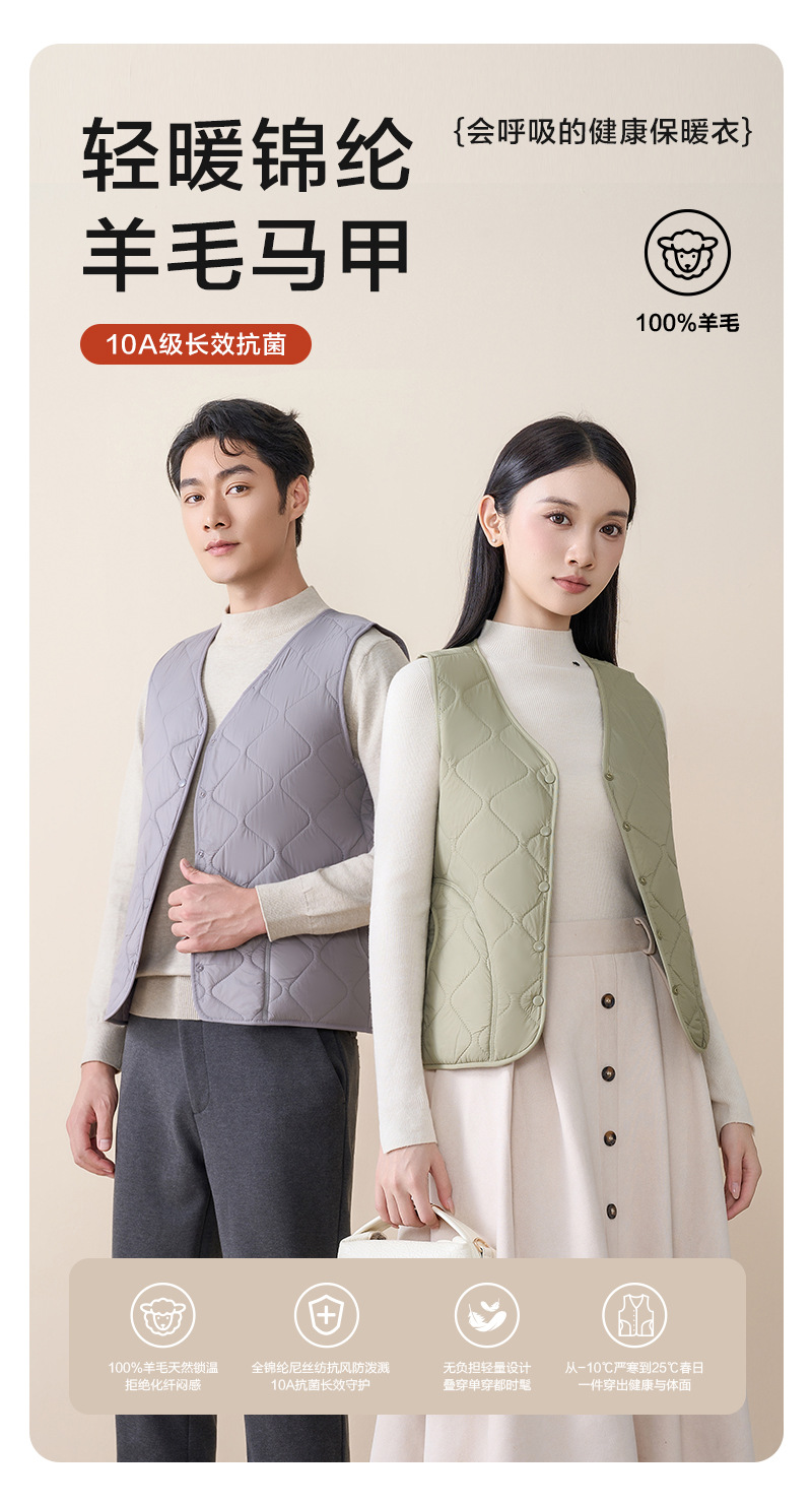 【BAIDAMA 情侣款轻暖羊毛马甲】轻暖时髦 男女同款 防风抗寒 保暖锁温 百搭不挑人 便捷穿脱 10A面料 抗皱耐磨