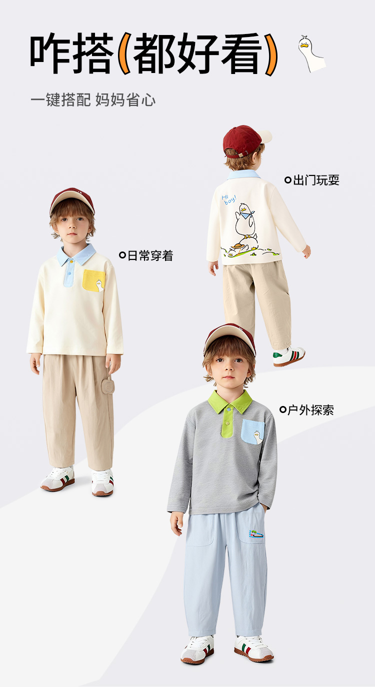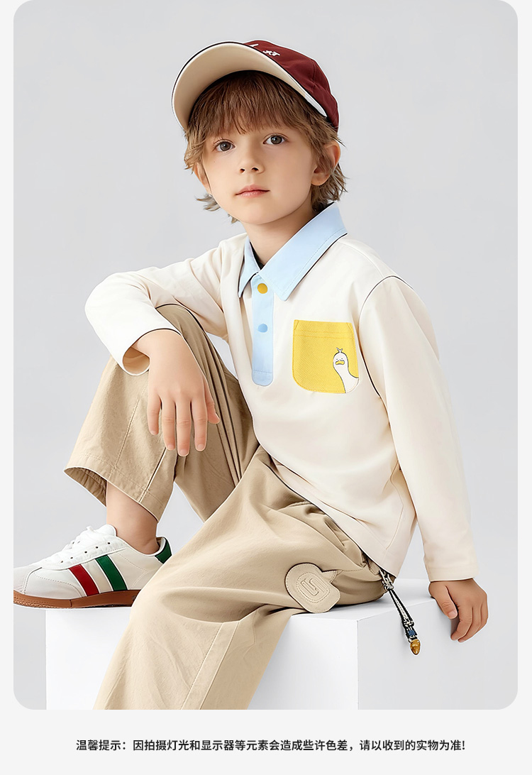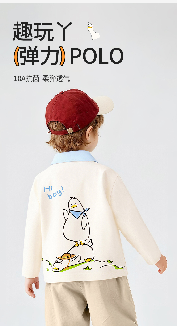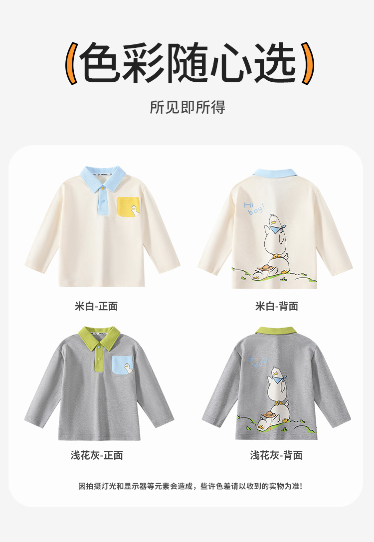 【10A抑菌】【90-130】【可可鸭】男童春秋撞色长袖poloT恤