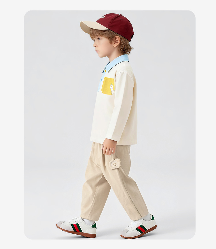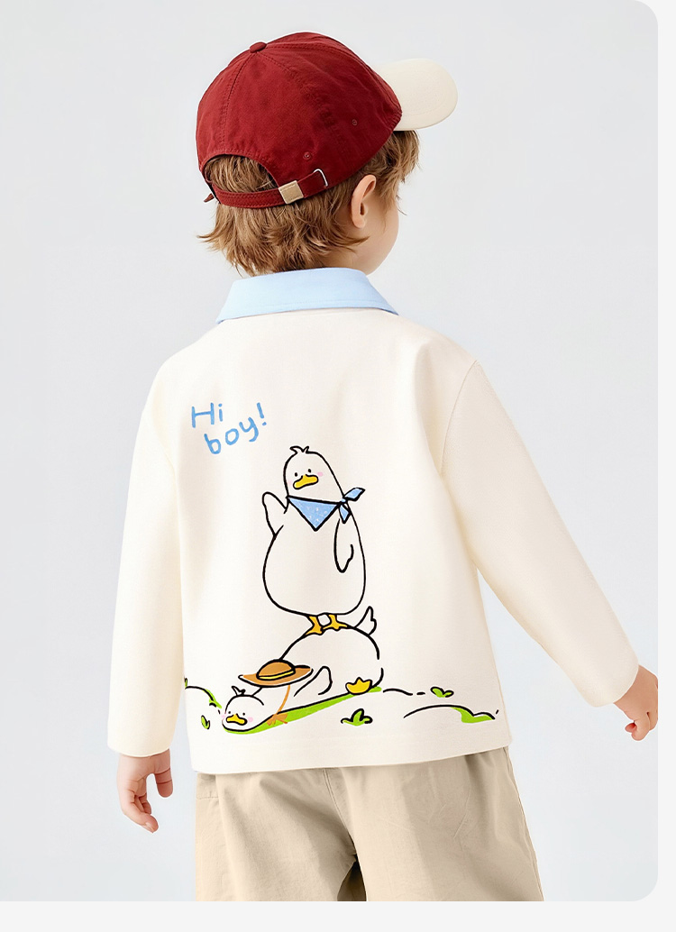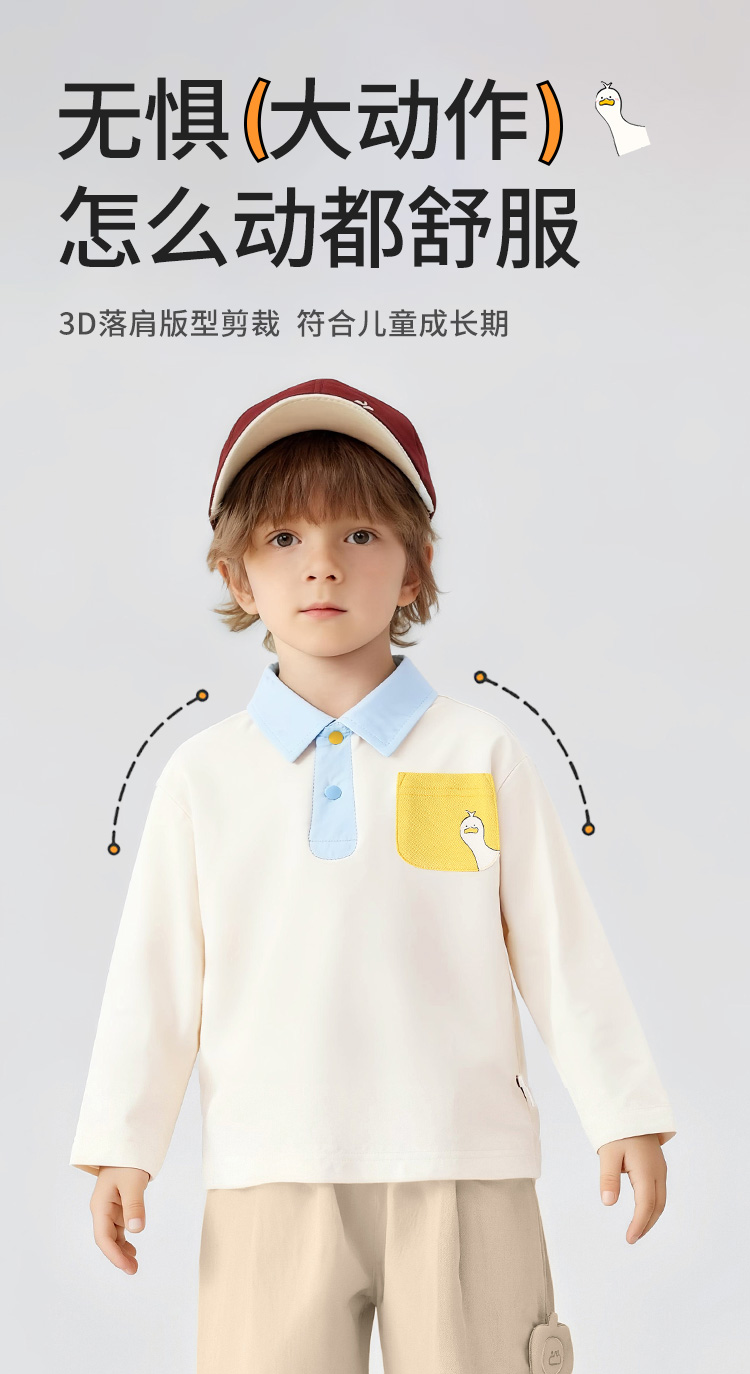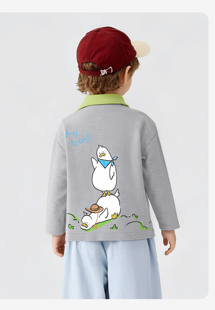 【10A抑菌】【90-130】【可可鸭】男童春秋撞色长袖poloT恤