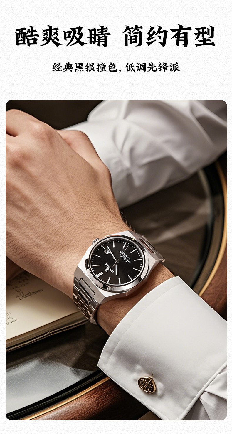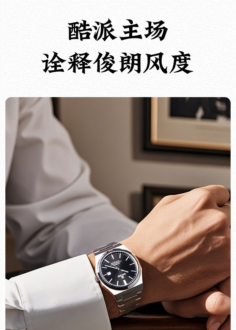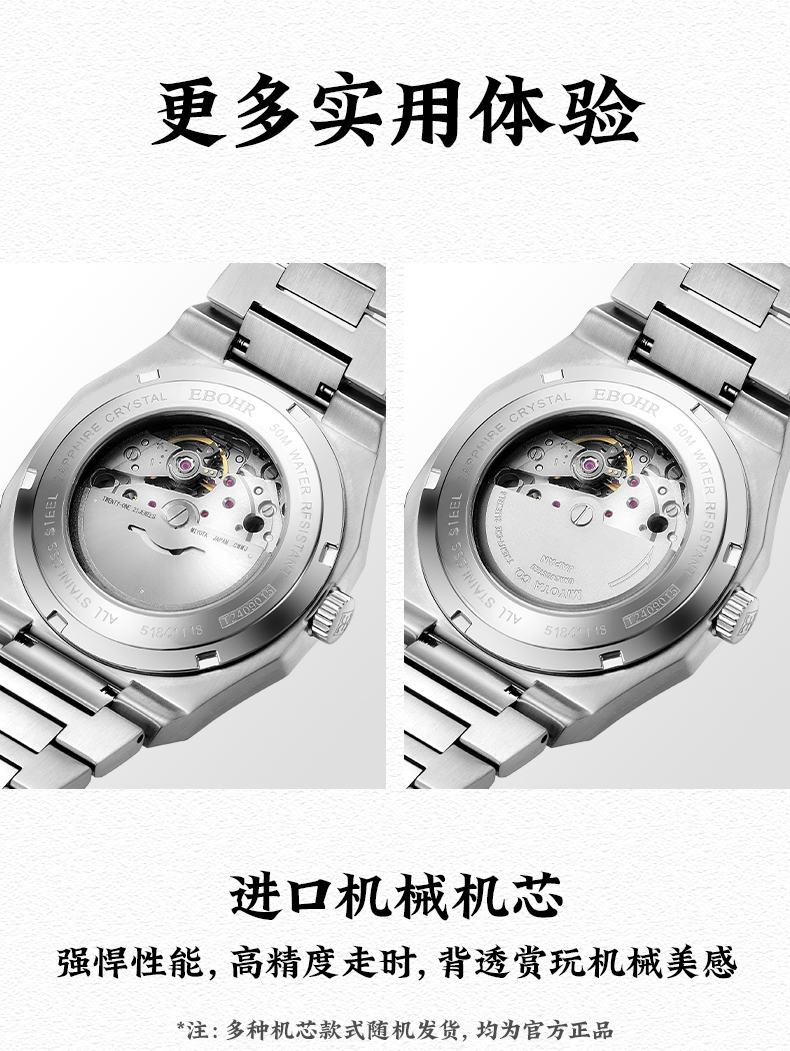 依波(EBOHR)探索者系列雅致小时盘机械男表5126