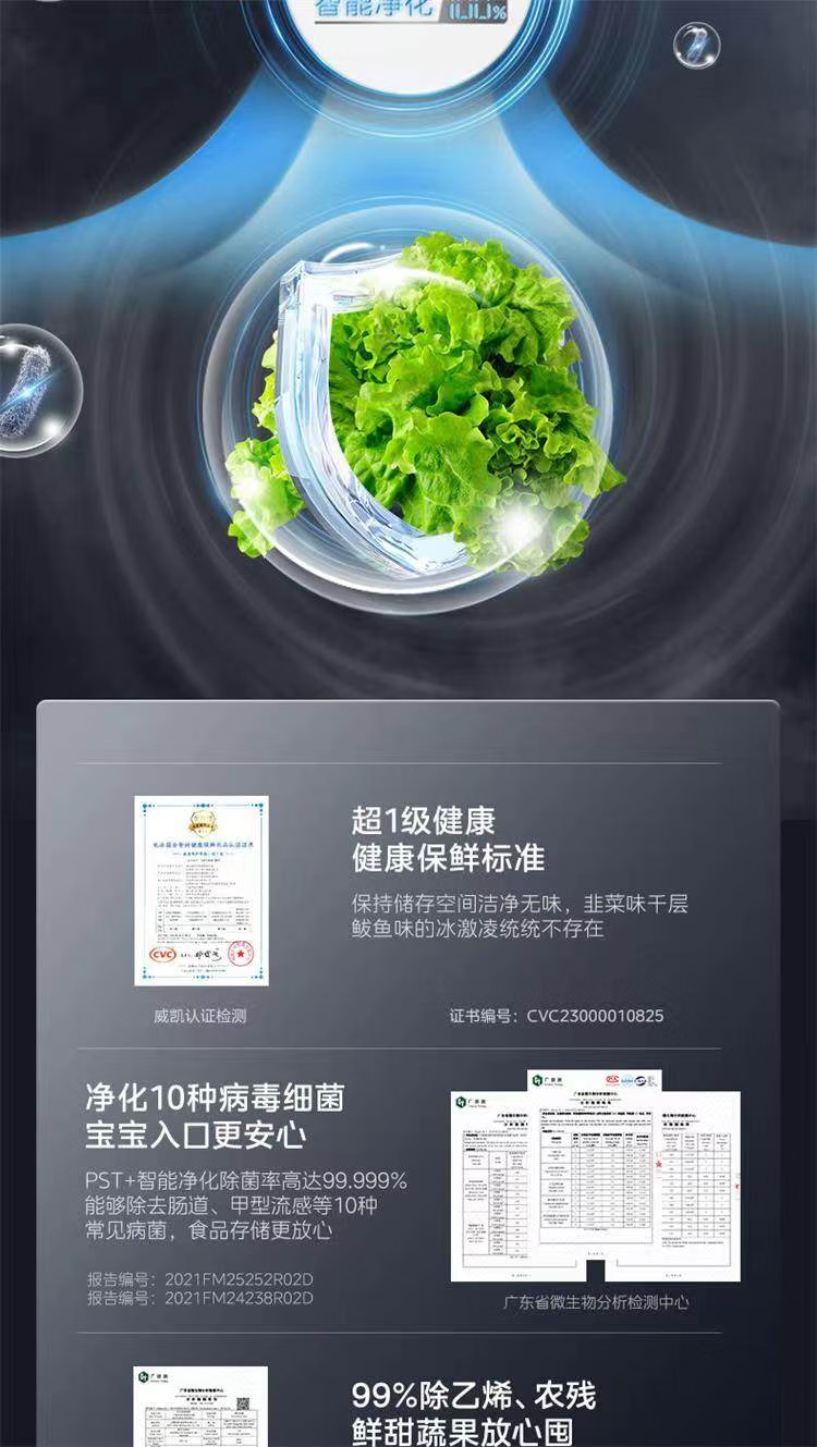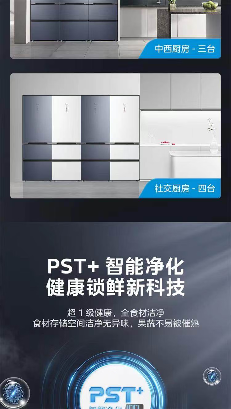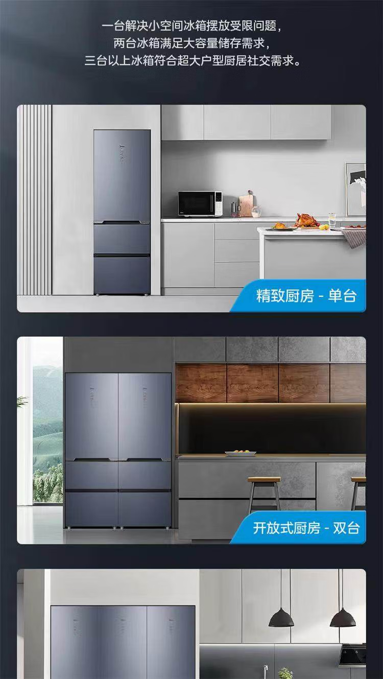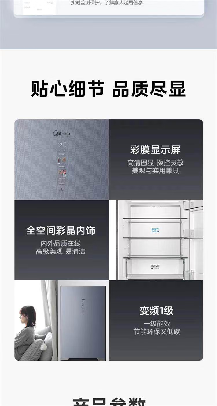 美的 BCD-401WUTGPZM 双变频一级能效节能超薄风冷无霜大容量家用电冰箱