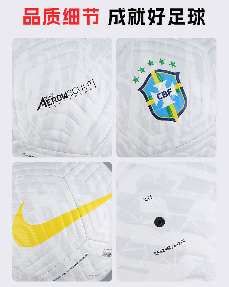小李子NIKE耐克巴西队足球5号球机缝比赛训练专用球HV1977-100
