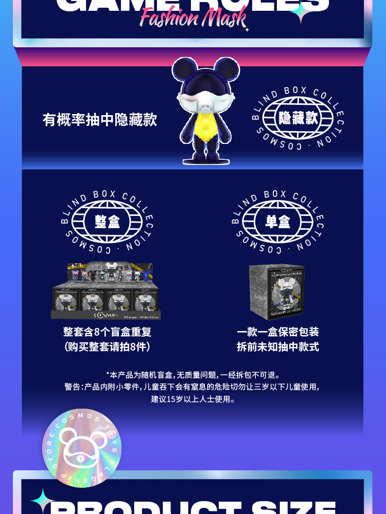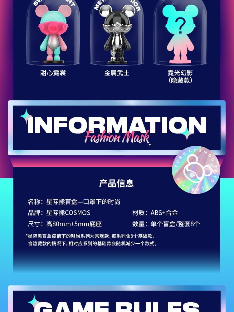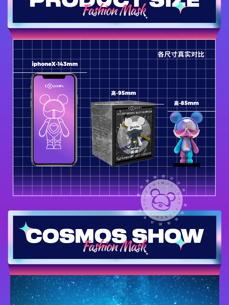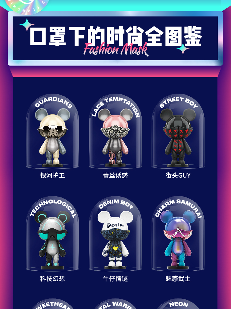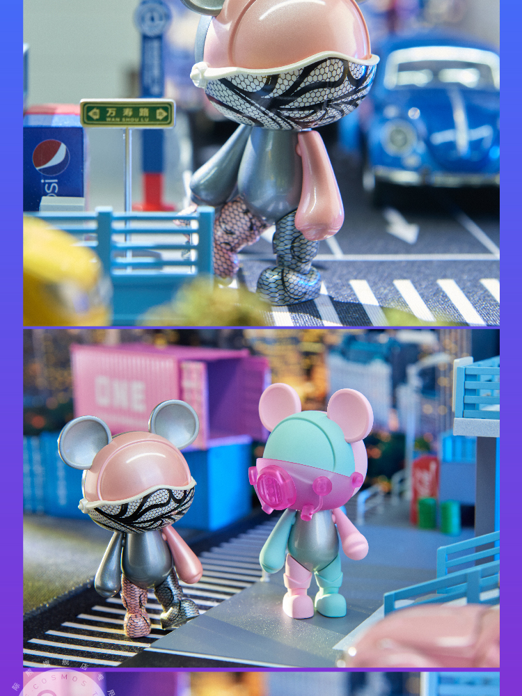 星际熊COSMOS之疫情下的时尚口罩系列盲盒 卡通动漫摆件 带底座