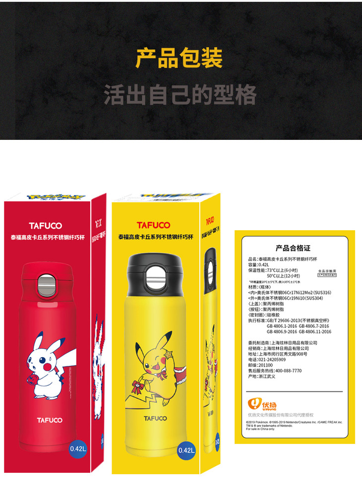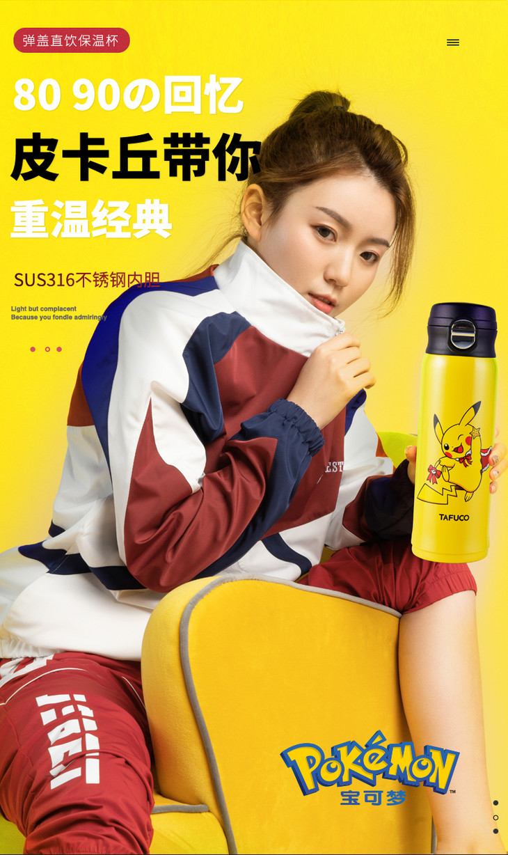 泰福高皮卡丘保温杯保温壶泡茶杯水杯