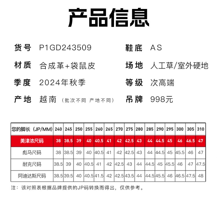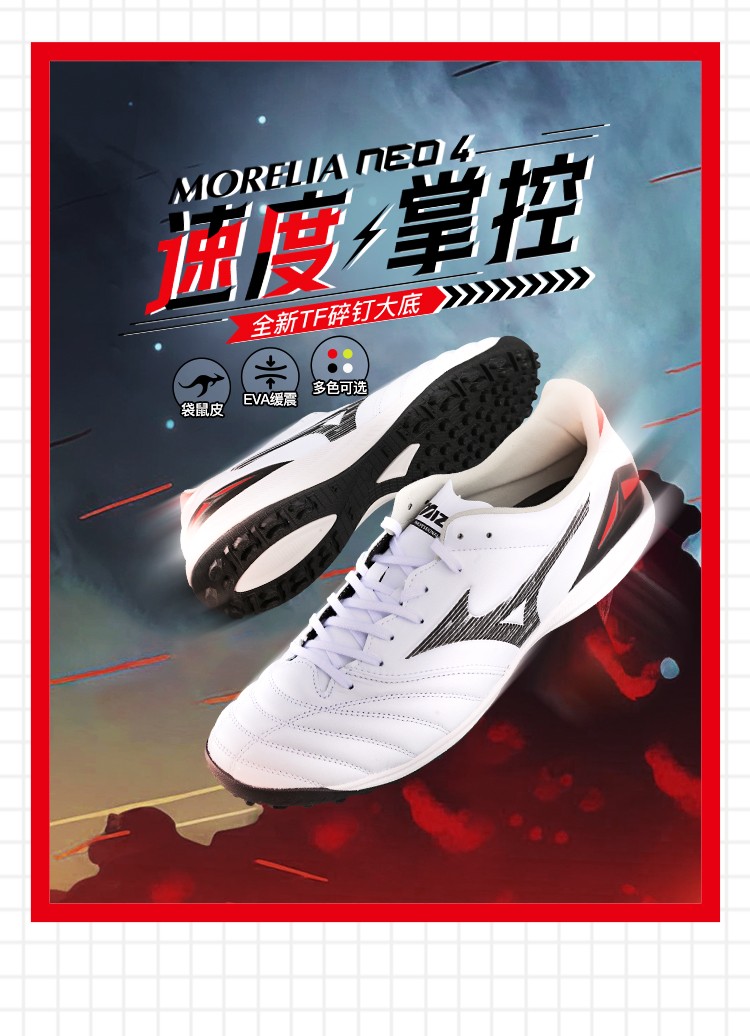 小李子Mizuno美津浓莫雷拉MORELIA NEO 4次顶袋鼠皮AS碎钉成人足球鞋男