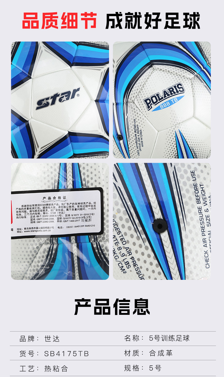 小李子STAR世达足球5号球热粘合比赛训练专用赛事球SB4175TB