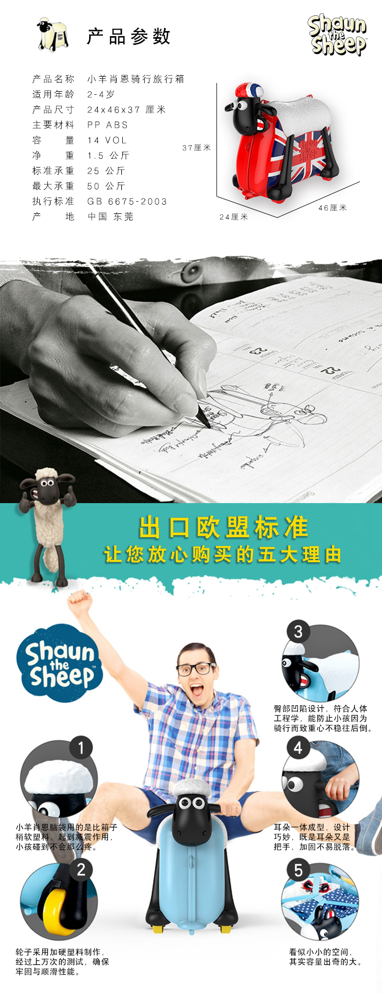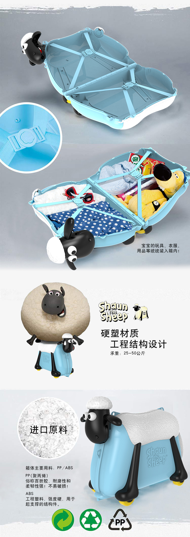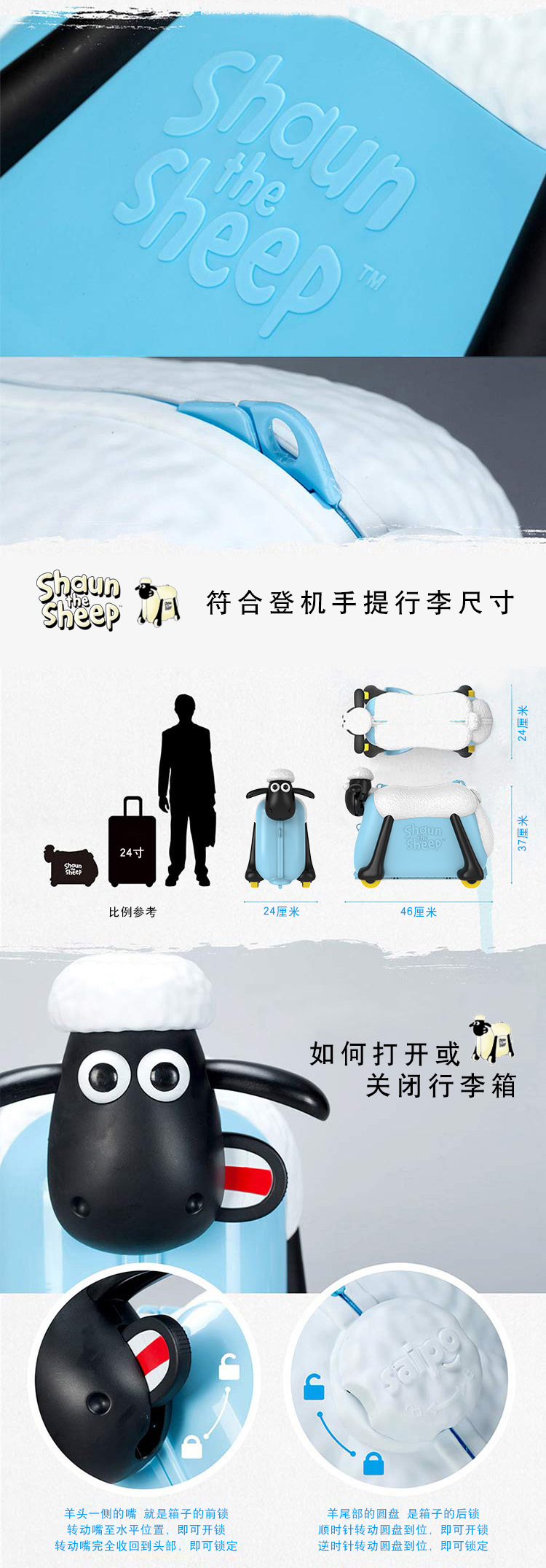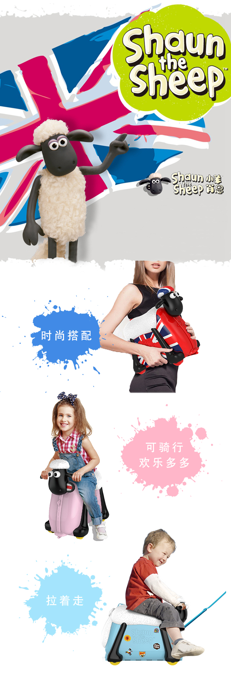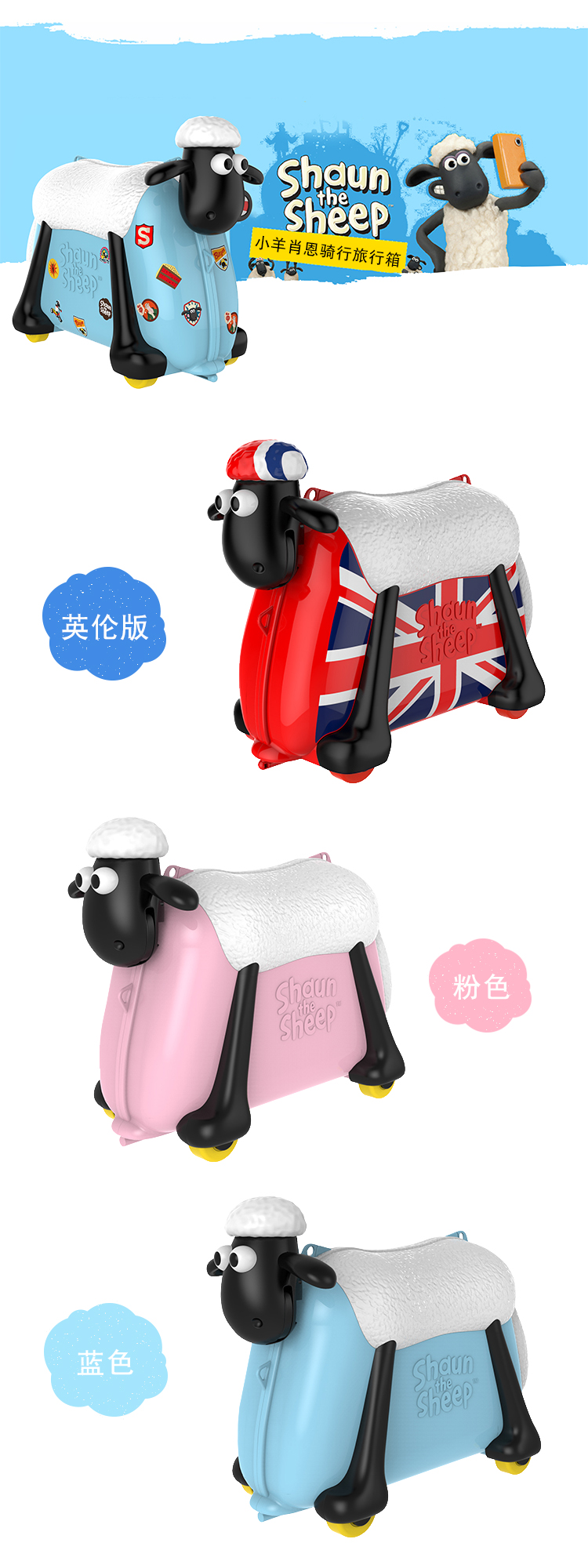 小羊肖恩“咩咩”发声骑行旅行箱可骑可坐多功能儿童行李箱