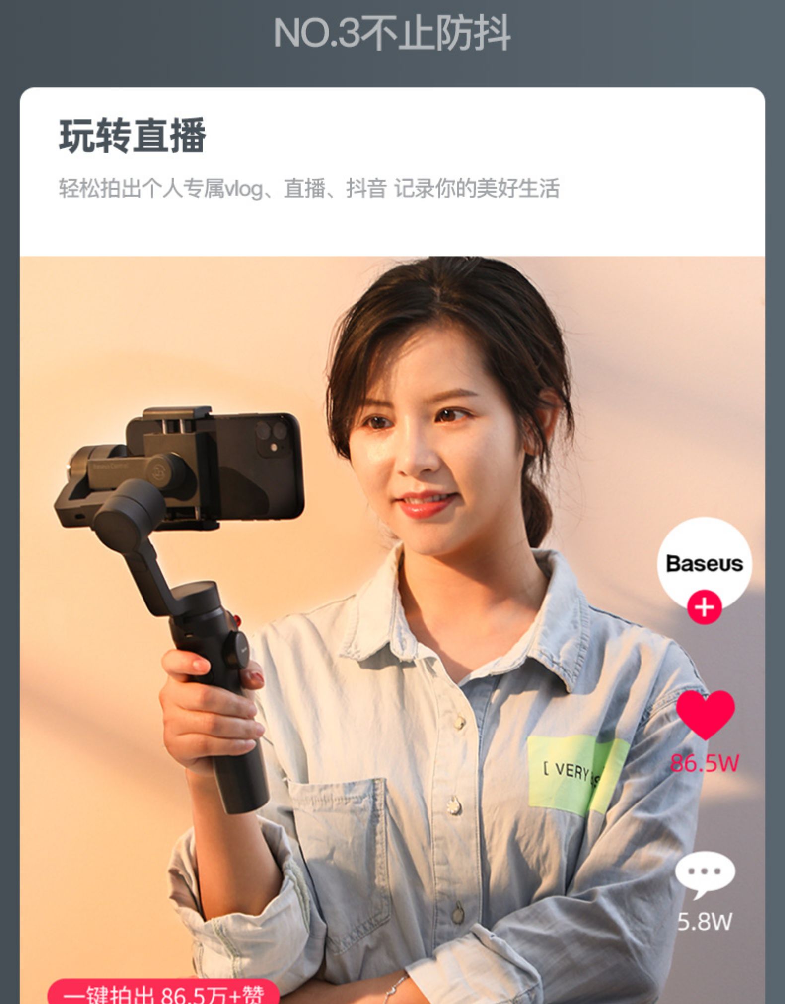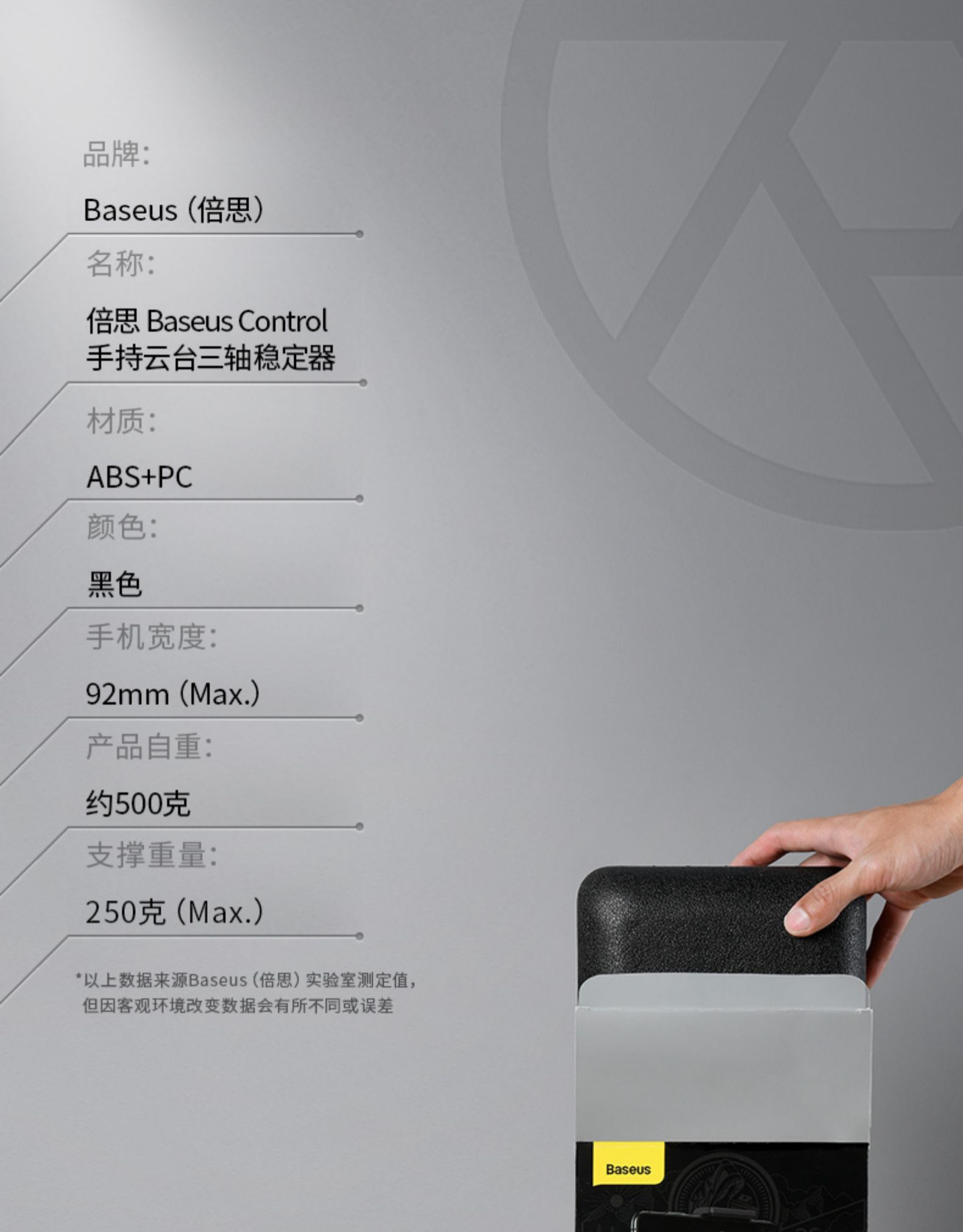 CW-YMS 倍思 Baseus Control手持云台三轴稳定器 深灰色SUYT-0G云台手持防抖拍摄自拍杆自拍视频神器360度旋转跟拍