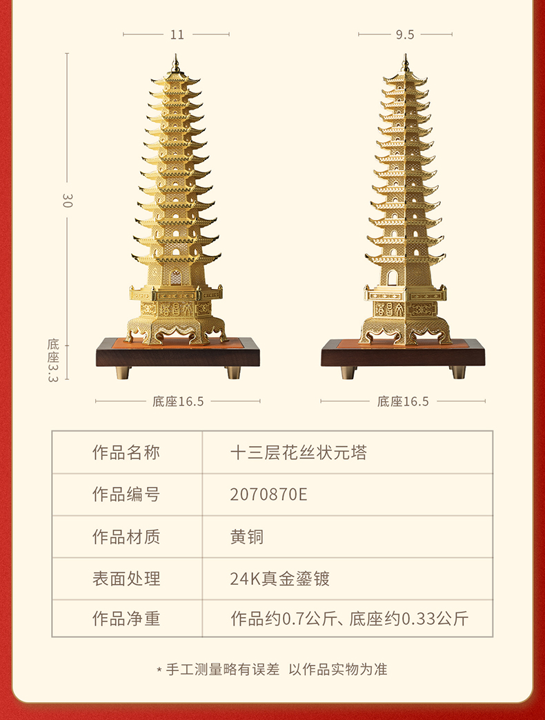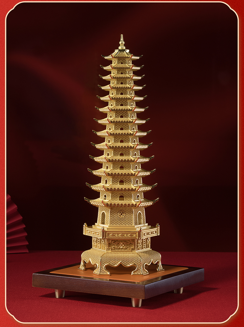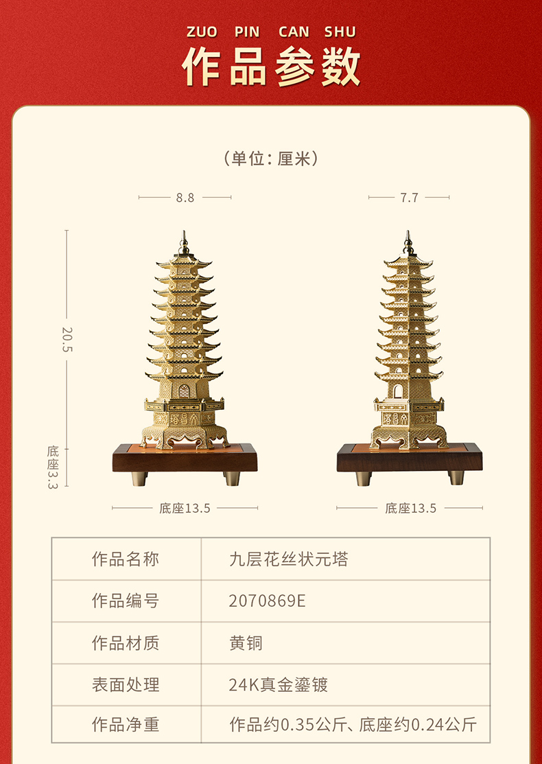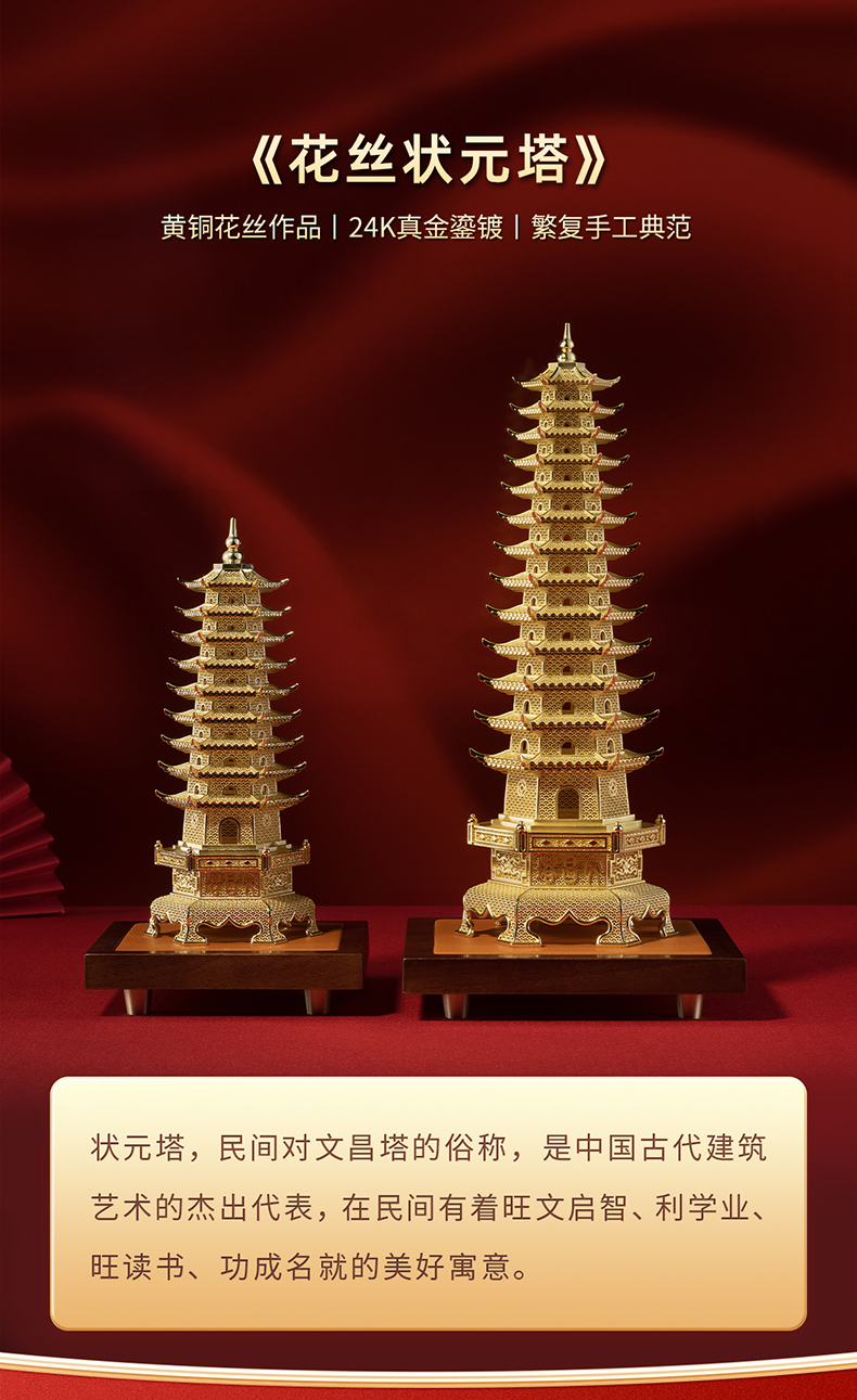 铜师傅《花丝状元塔》客厅桌面铜塔摆件,家居装饰中考高考礼物