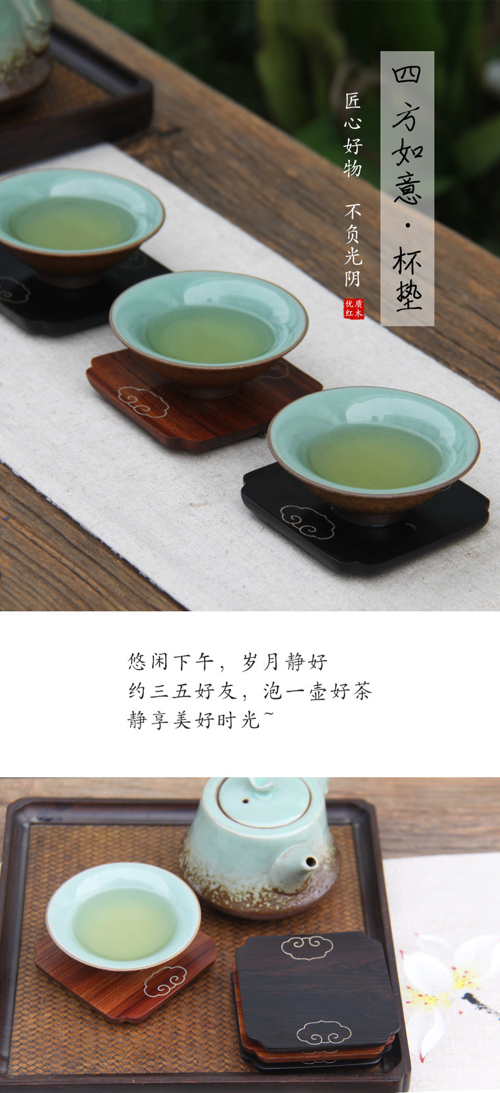 四方如意杯垫° 酸枝&紫光檀
