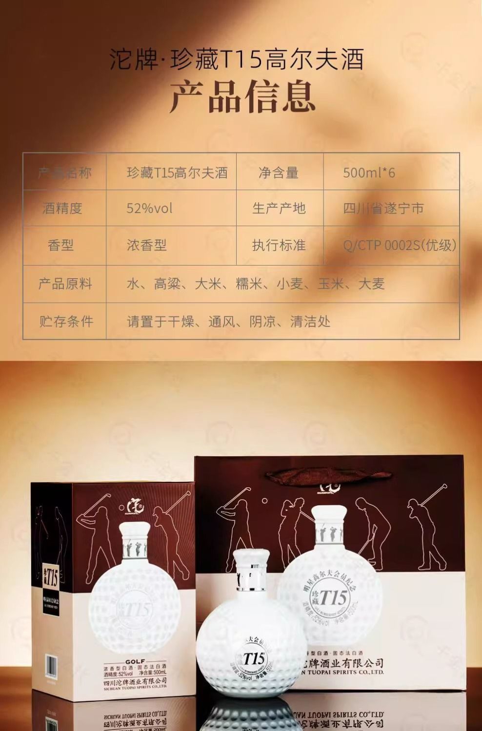 四川沱牌酒业珍藏高尔夫T15 52度浓香型白酒 整箱500ml*6瓶包邮